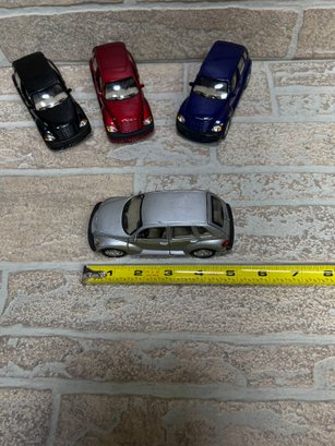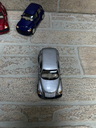 Lot of 4 diecast Chrysler PT Cruiser model cars in assorted colors, approximately 1:34 scale.