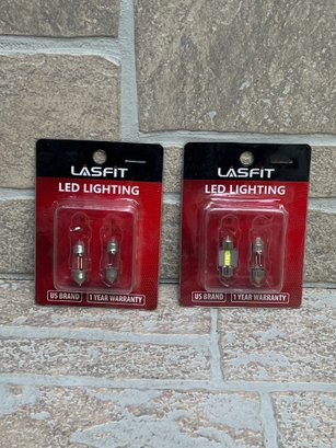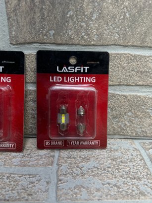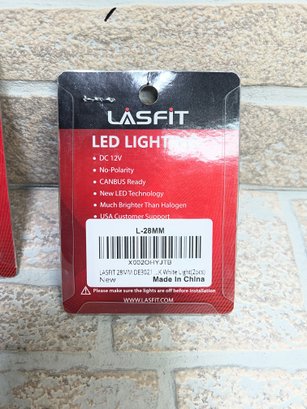 Lot of LASFIT LED lighting bulbs, new in original packaging. These are 28MM festoon-style bulbs commonly used for interior dome lights, license plate lights, and other automotive applications.