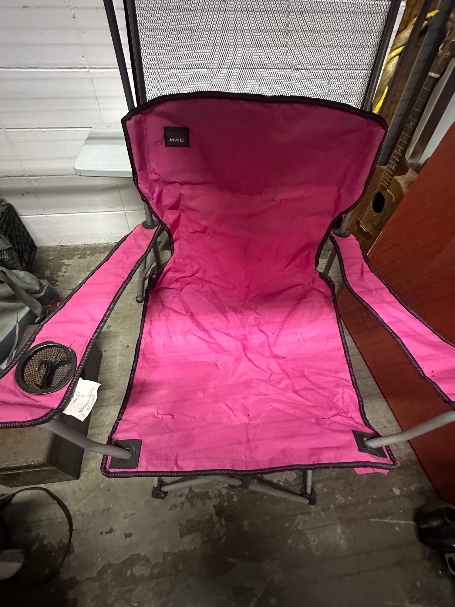 Notes: Good pre-owned condition General wear, light dirt, and signs of use Fabric shows some fading/wrinkling Frame is sturdy and functional Chair opens and folds properly No major structural issues observed