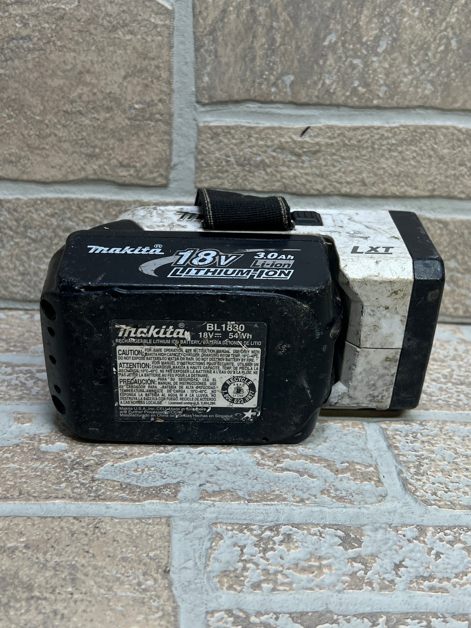 Makita 18V LXT cordless work light/flashlight paired with a Makita 18V 3.0Ah Lithium-Ion battery (BL1830).