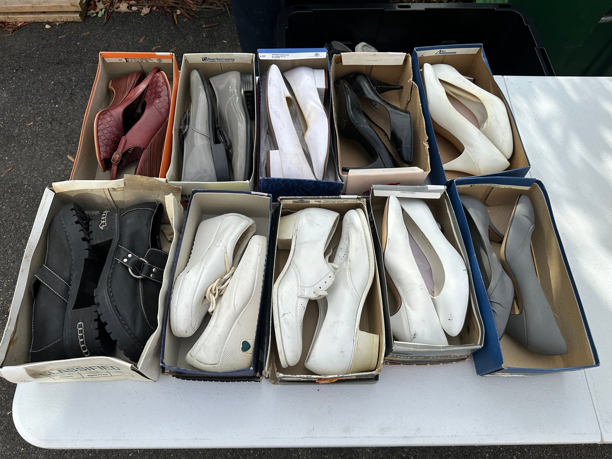 Notes: Pre-owned and/or new old stock. Items are being sold as-is. While some pairs appear lightly worn or possibly unused, others show signs of use. Some may exhibit staining, discoloration, or curling/warping of insoles due to age and storage. Boxes may show shelf wear. Please review photos carefully for overall condition.