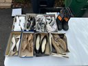 Mixed lot of women’s footwear including a variety of styles, featuring dress heels, flats, casual shoes, and a pair of winter/snow boots. Several pairs are stored in original boxes.