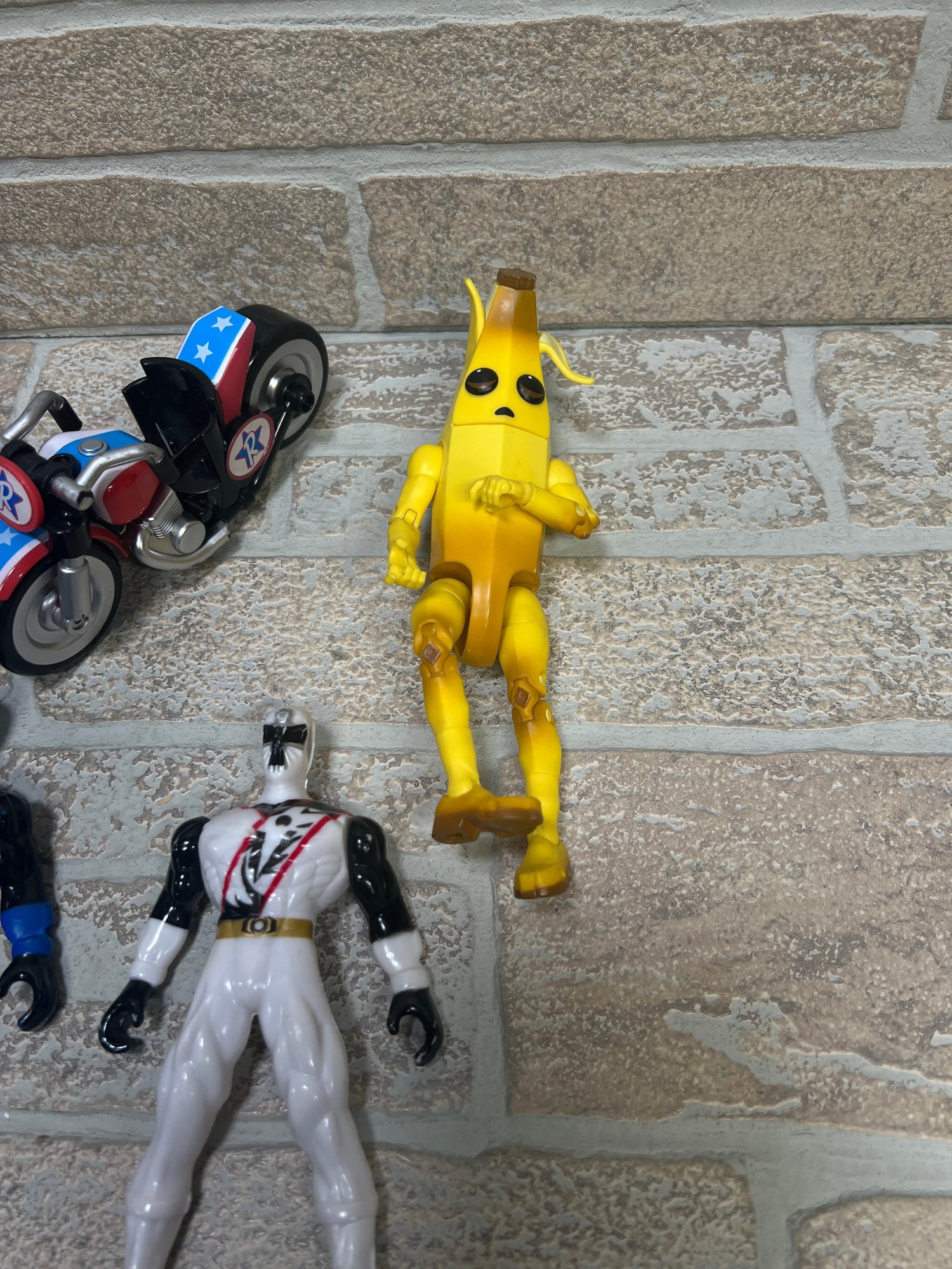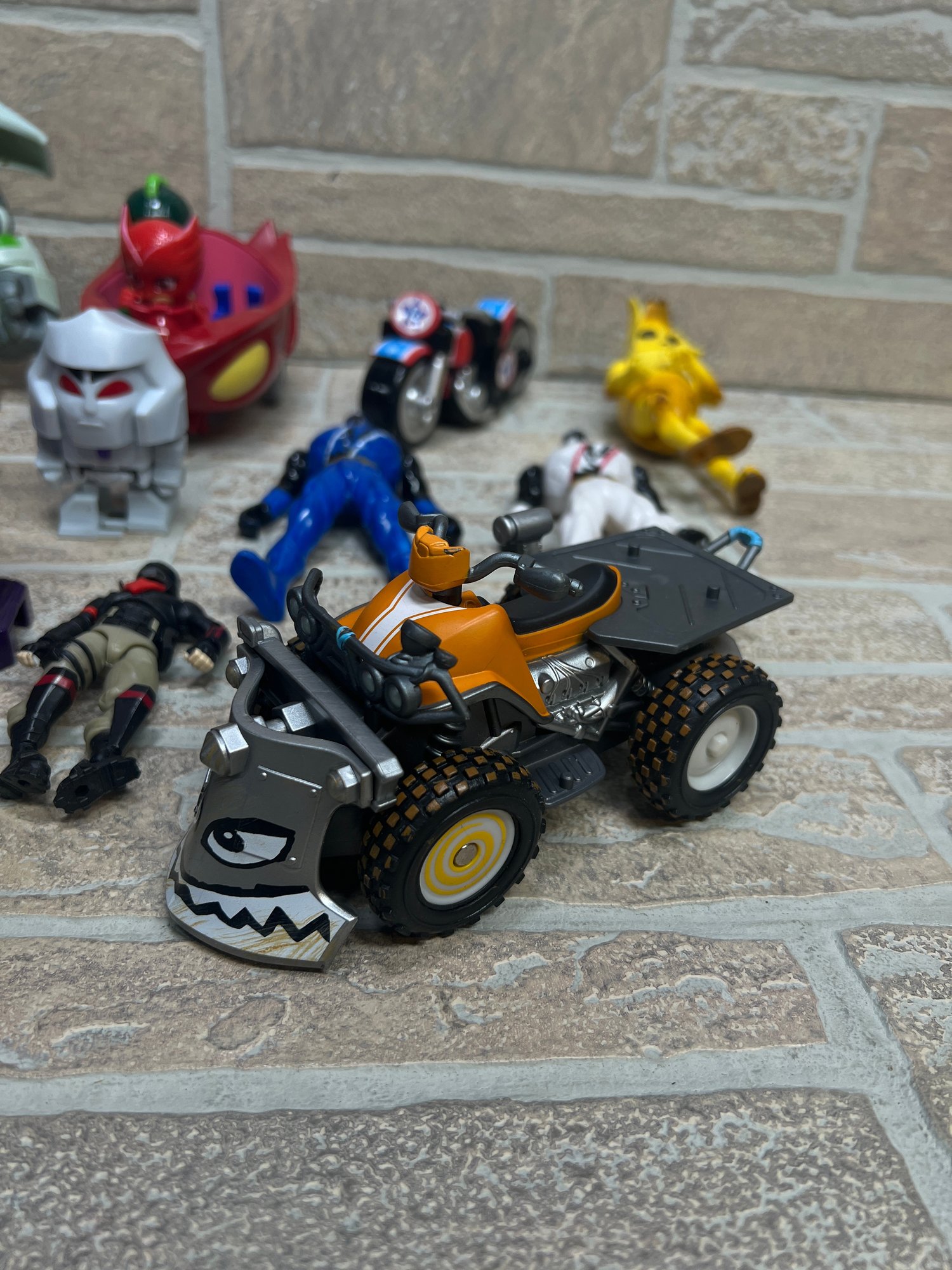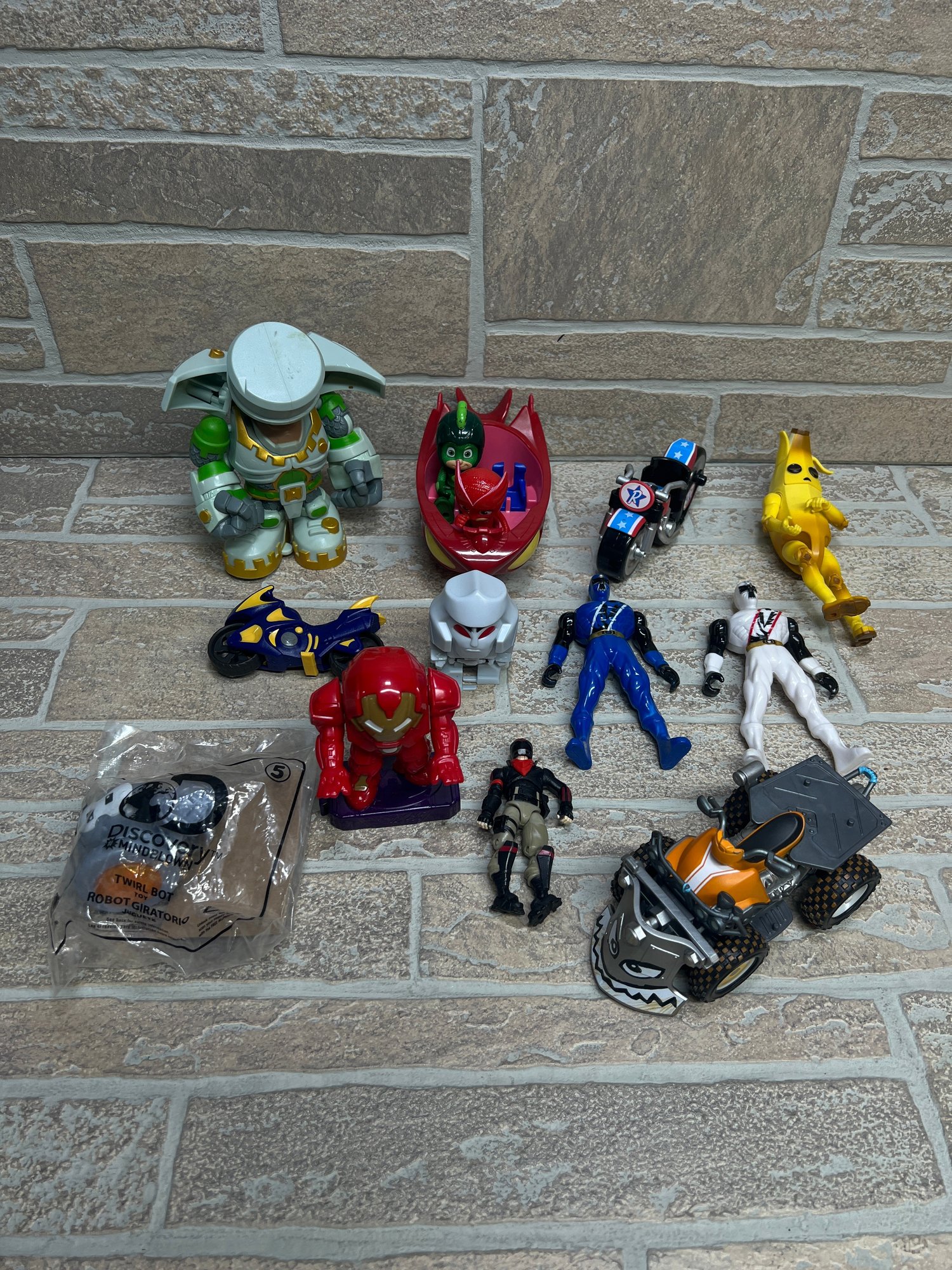 Mixed lot of assorted toys and action figures including characters, vehicles, and accessories from various brands and series.