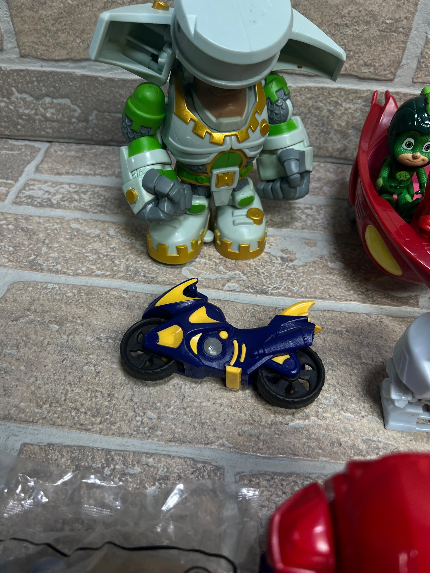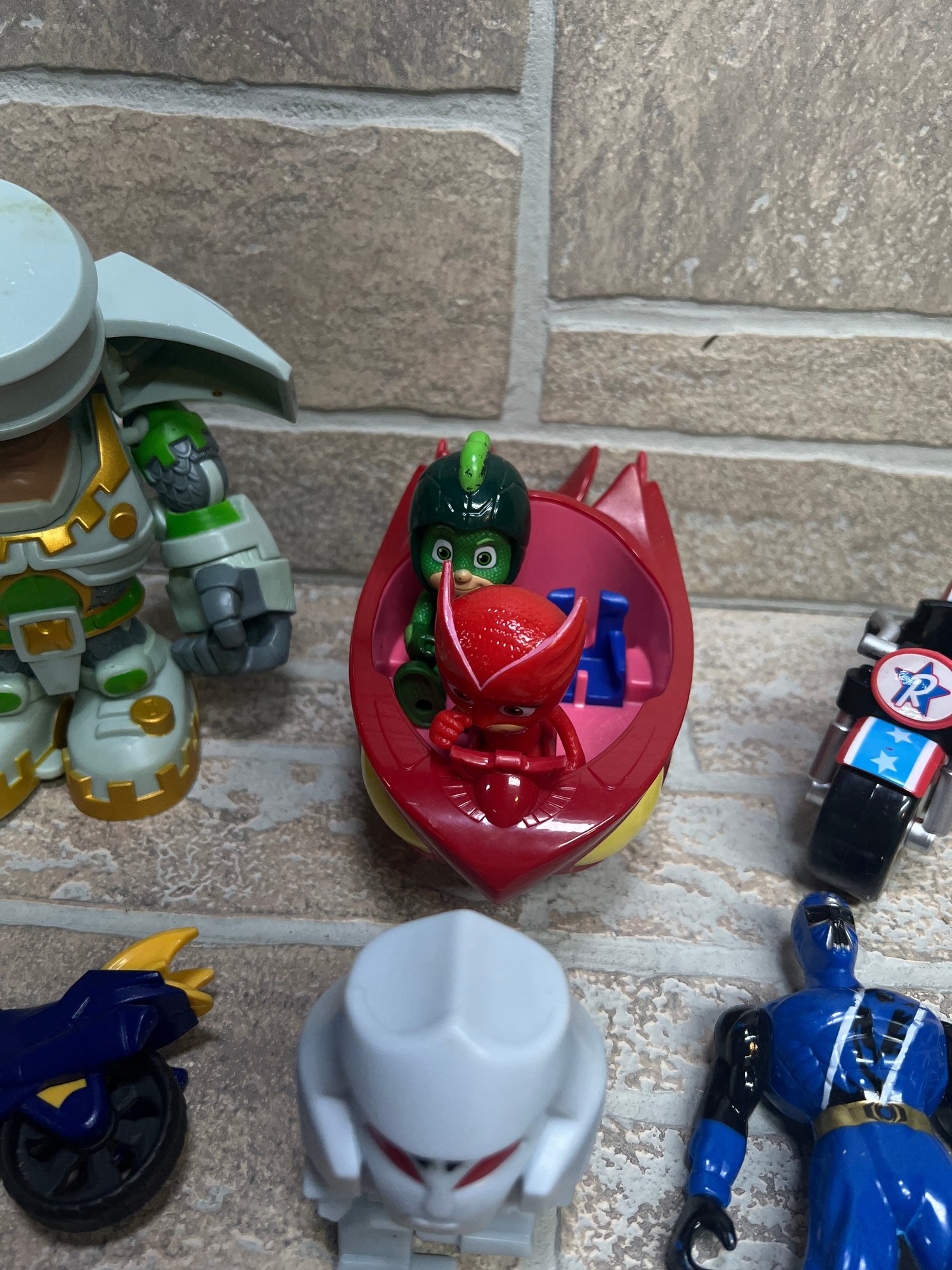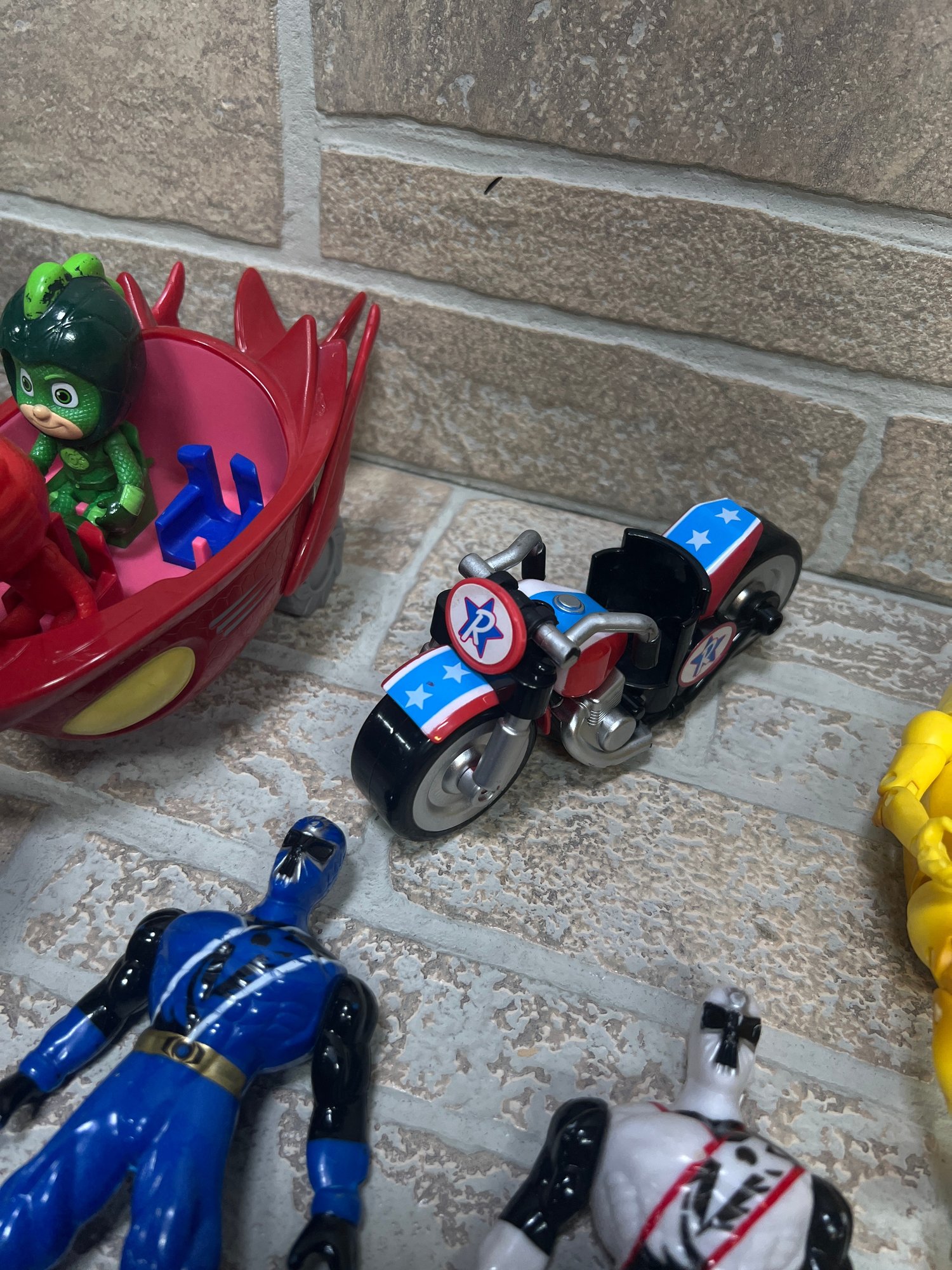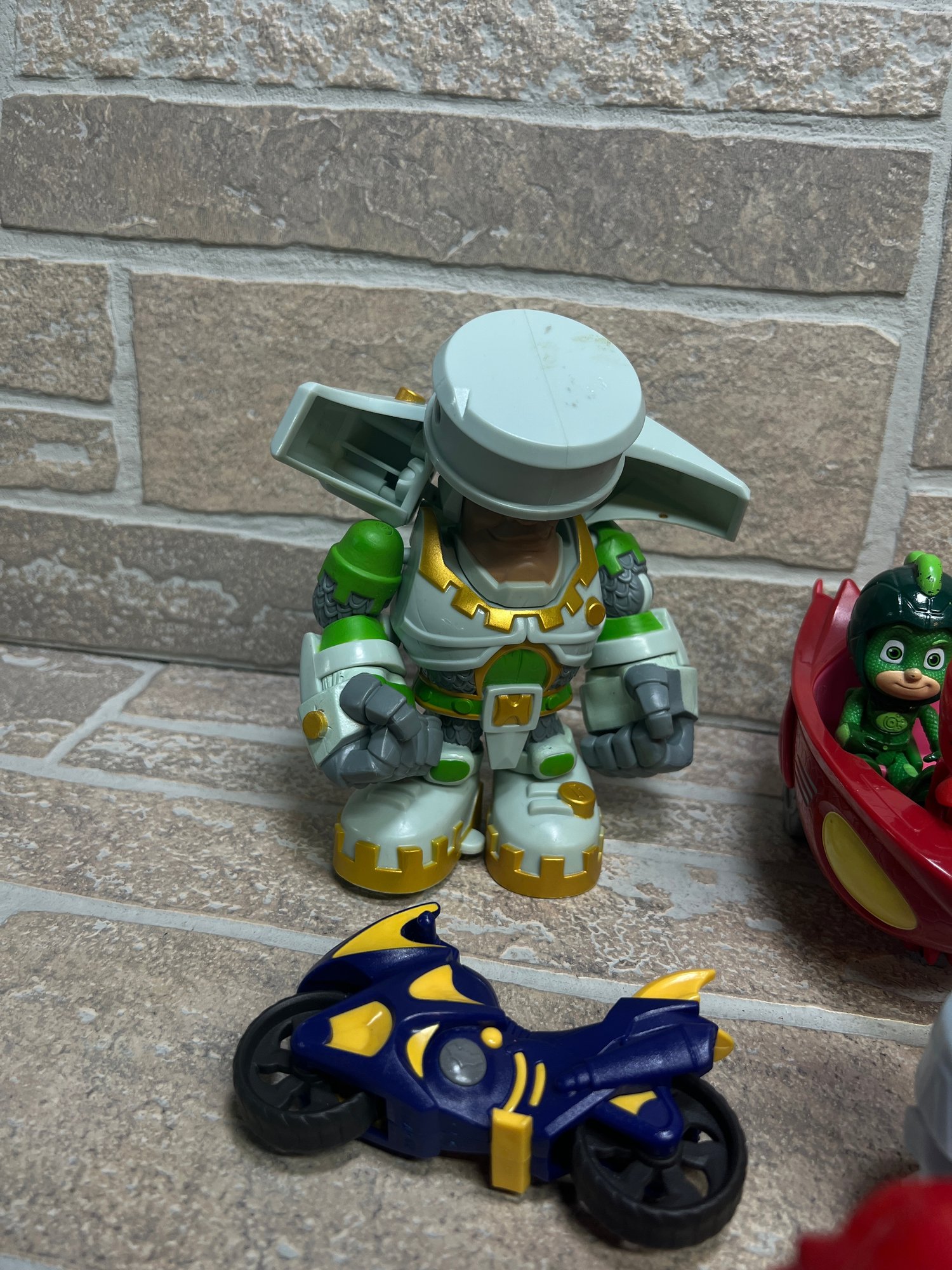PJ Masks figures and vehicle (Catboy/Owlette/Gekko themed car)