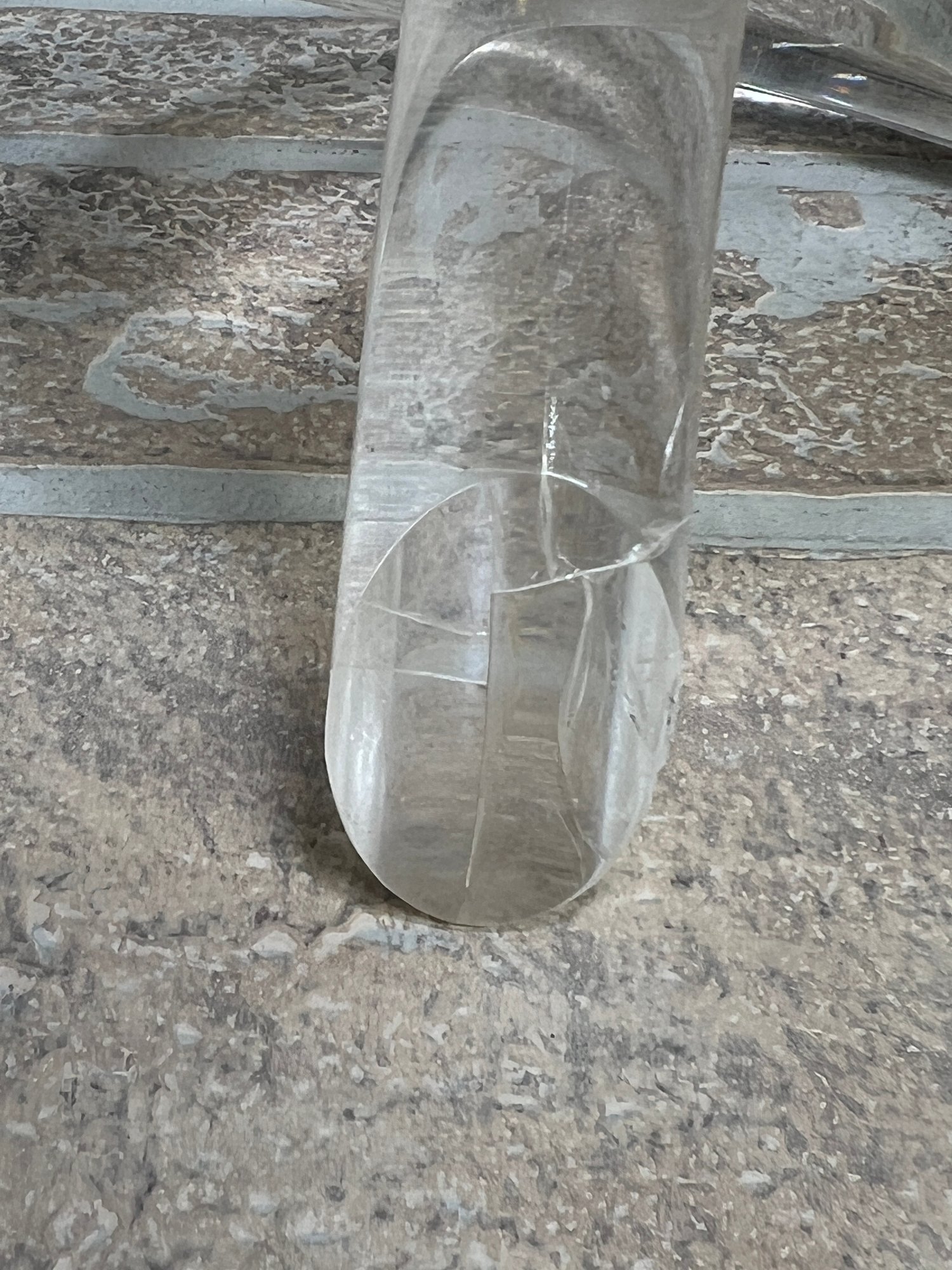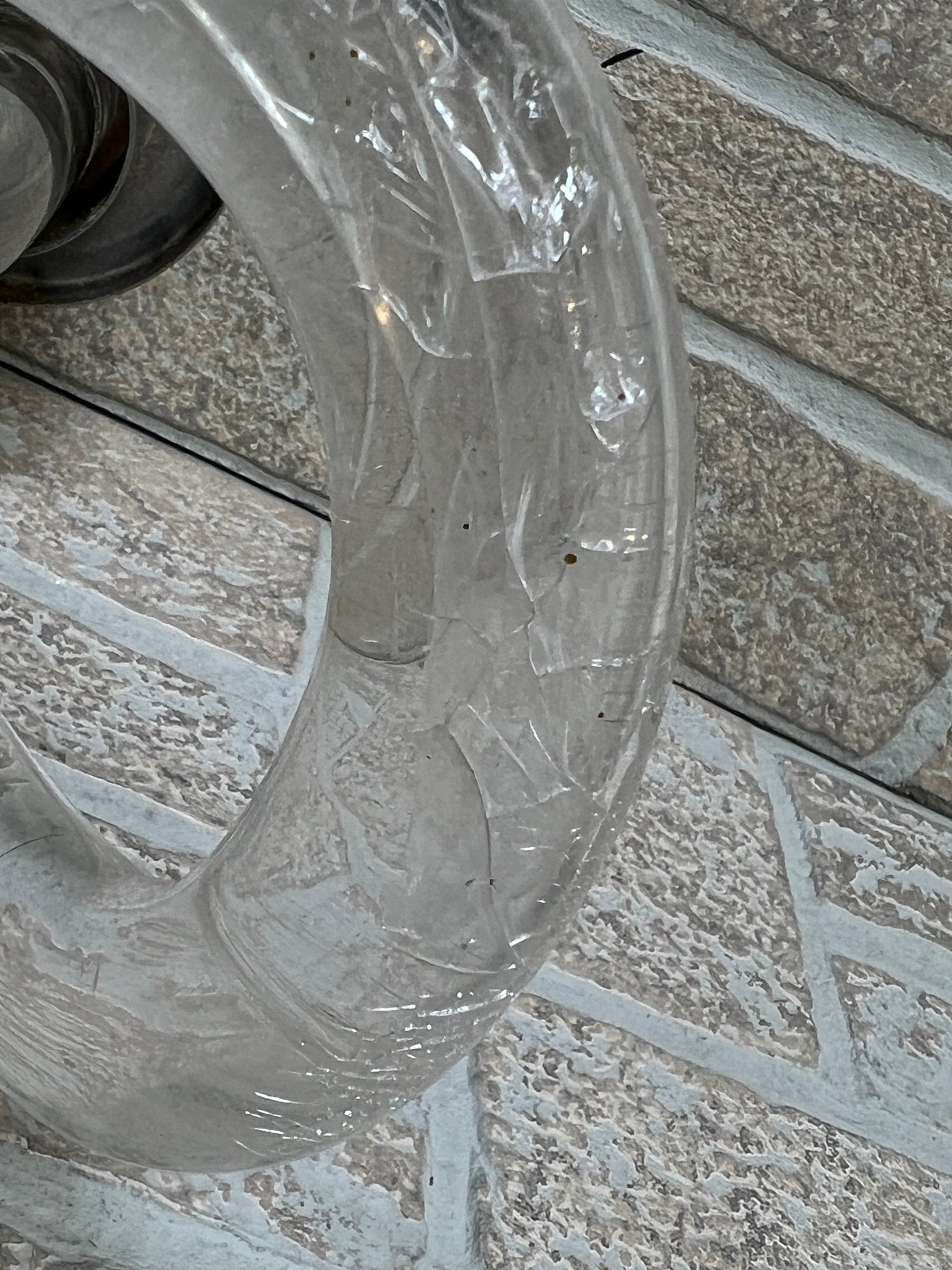 Notes: Significant cracking throughout the glass (visible in multiple areas) Cracks appear internal and surface-level; structural integrity unknown Additional scratches, scuffs, and wear present Metal top shows light wear/tarnish Due to damage, this item is being sold AS-IS for display, repair, or parts.