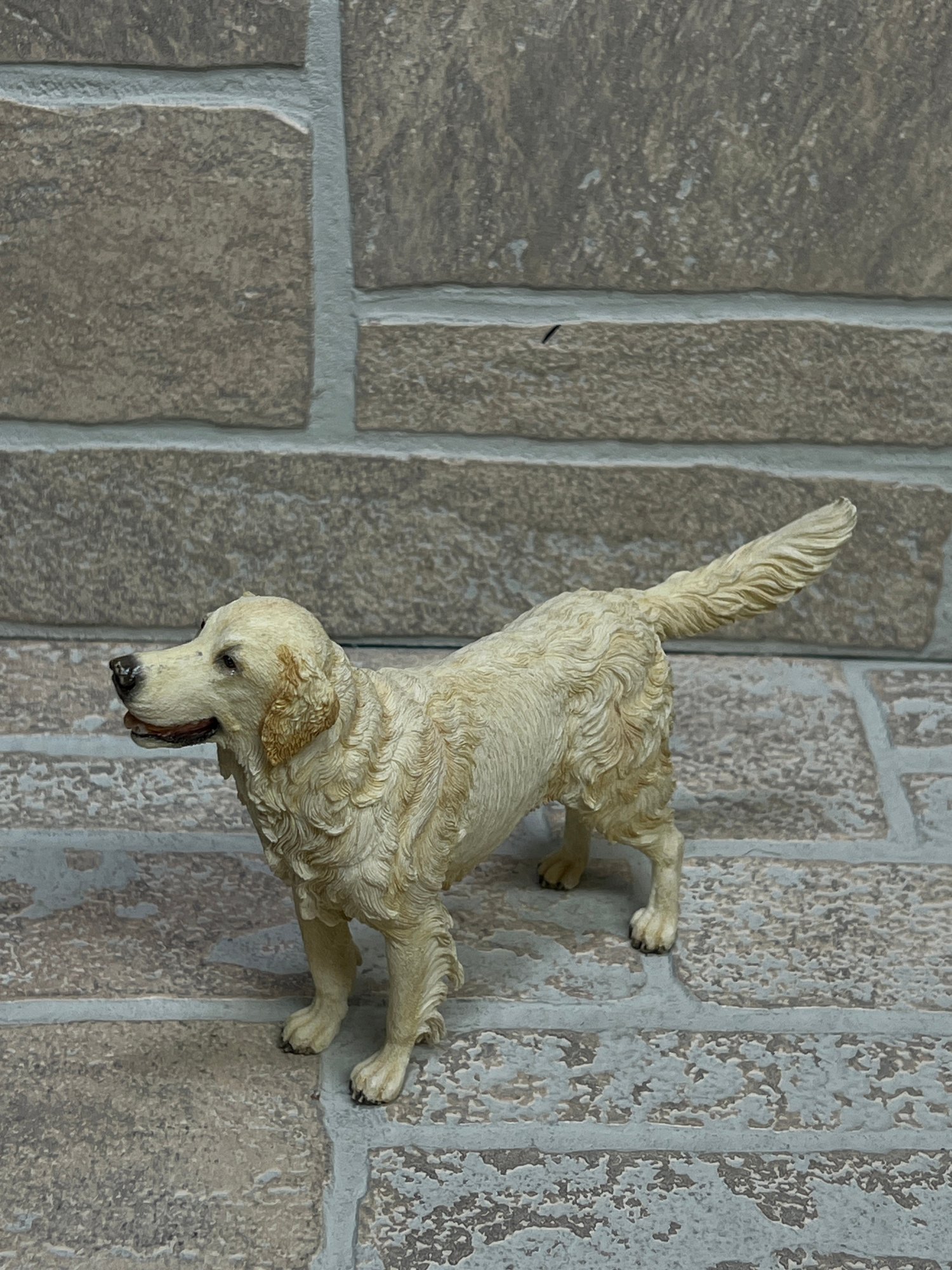Charming Golden Retriever figurine featuring realistic detailing and lifelike pose. This piece captures the friendly expression and textured coat of the breed, making it a great addition to any dog lover’s collection or home décor display.