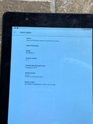 RCA 10-inch Android tablet, model RCT6B86E12, powered on and working.