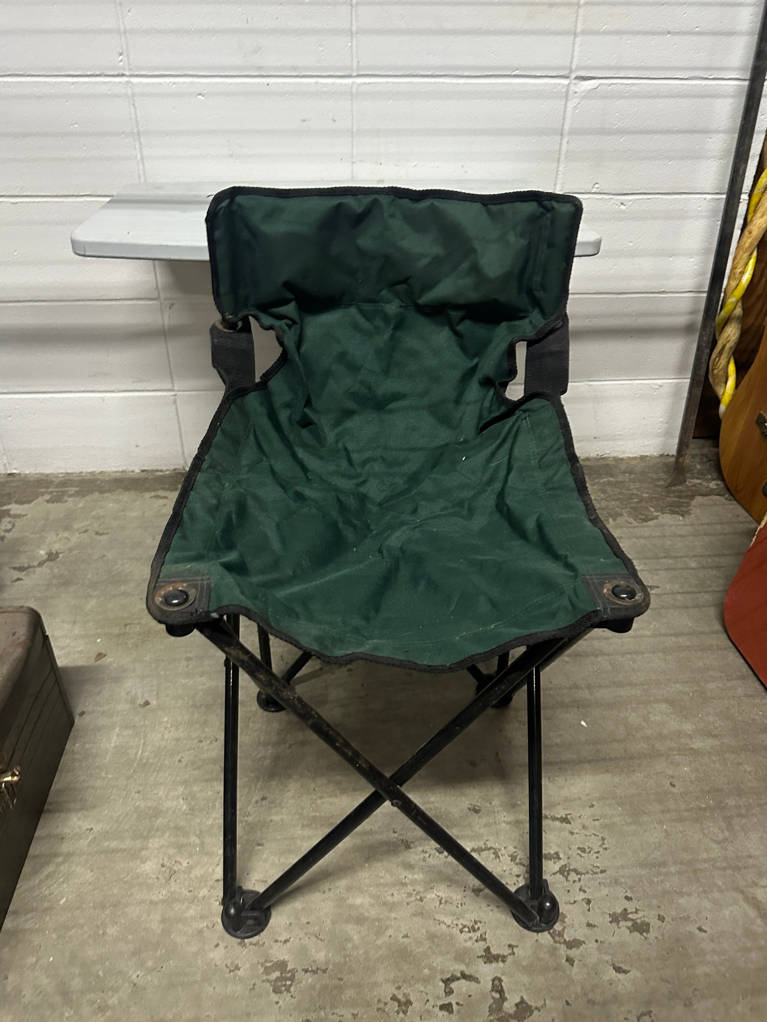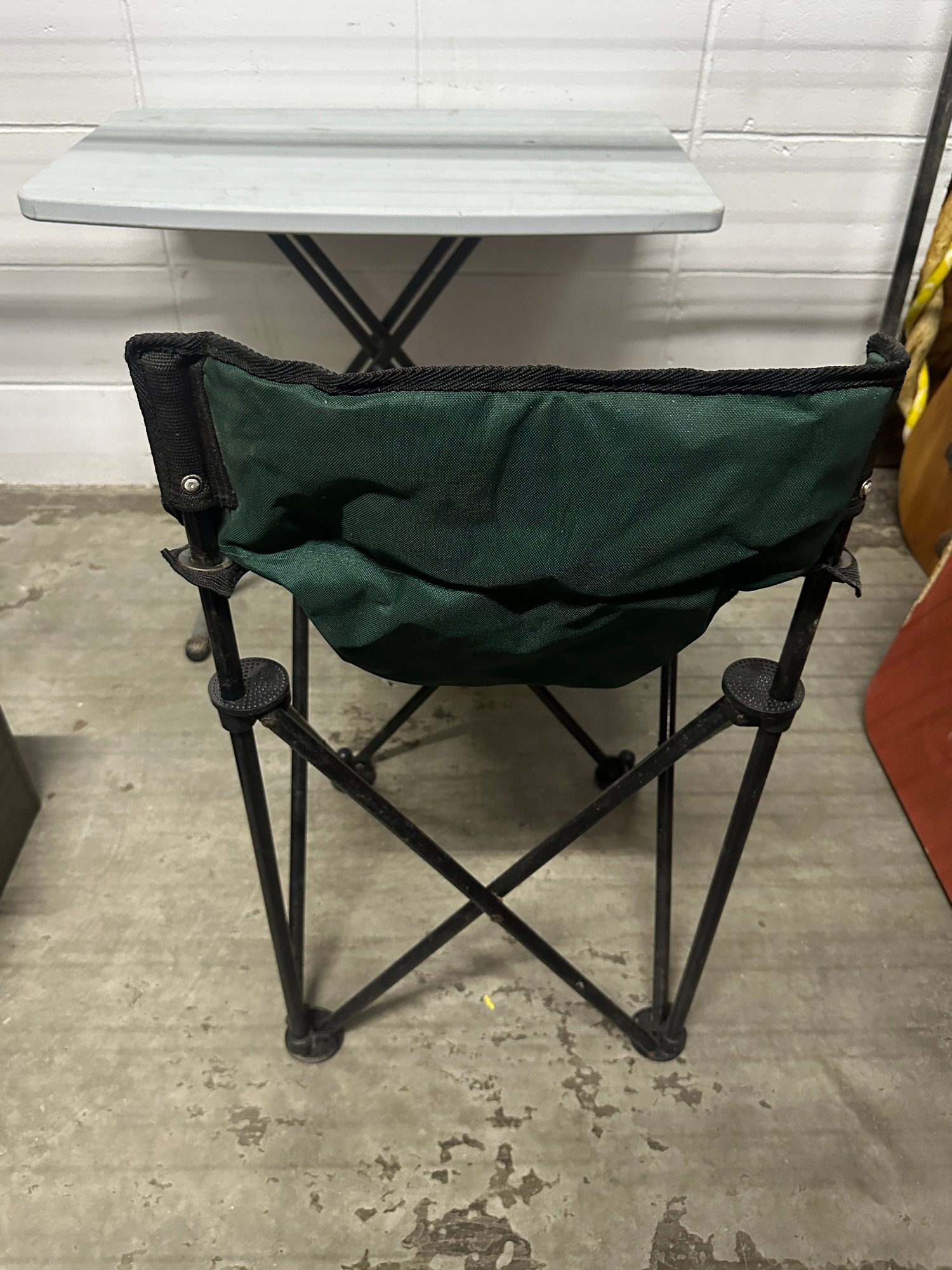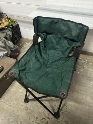 Simple and functional green folding camping chair with a lightweight metal frame and durable fabric seat.