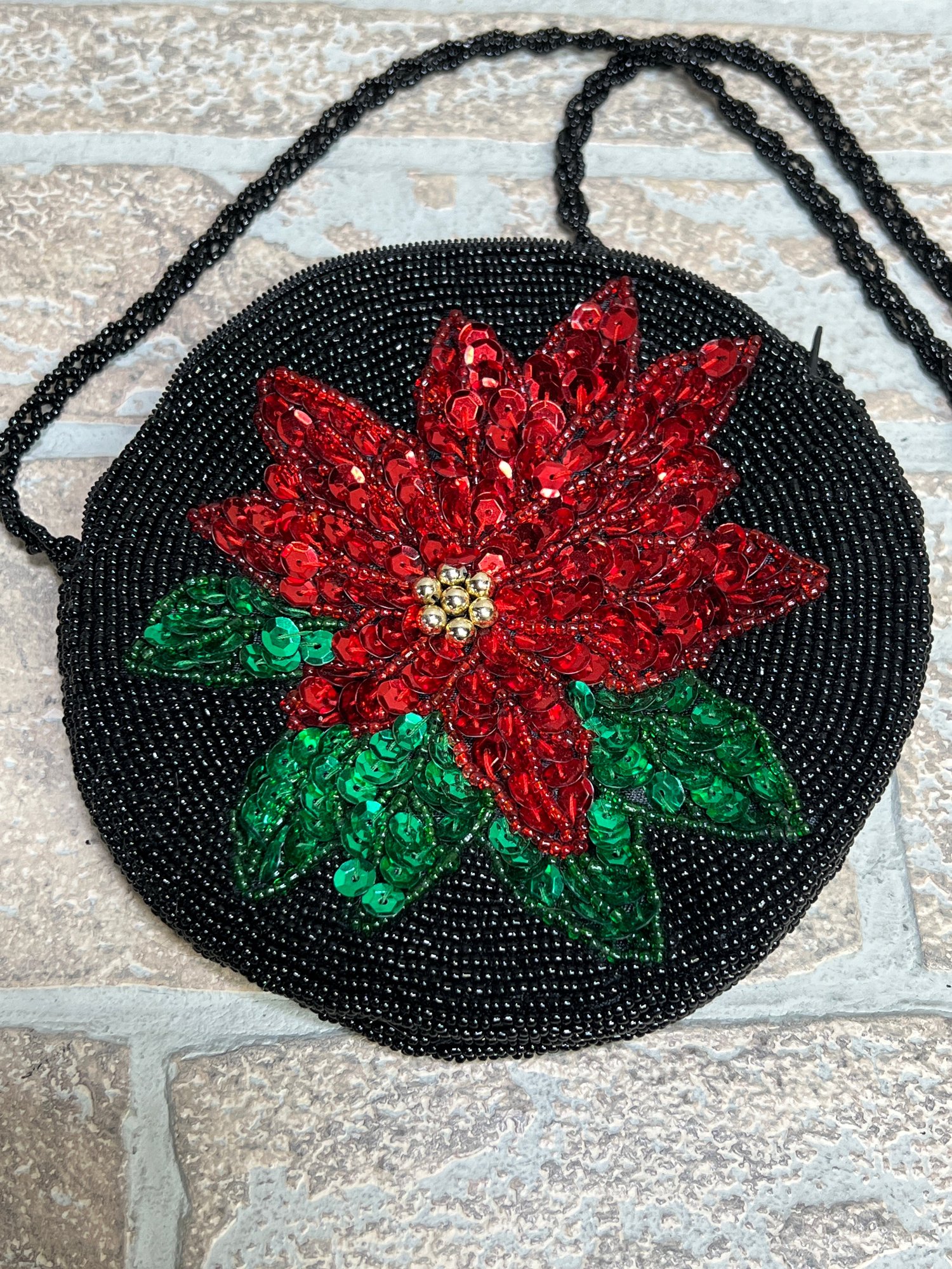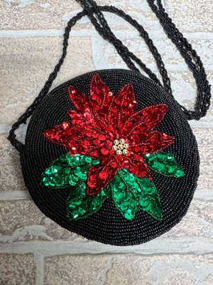 Sequin Beaded Poinsettia Change Purse