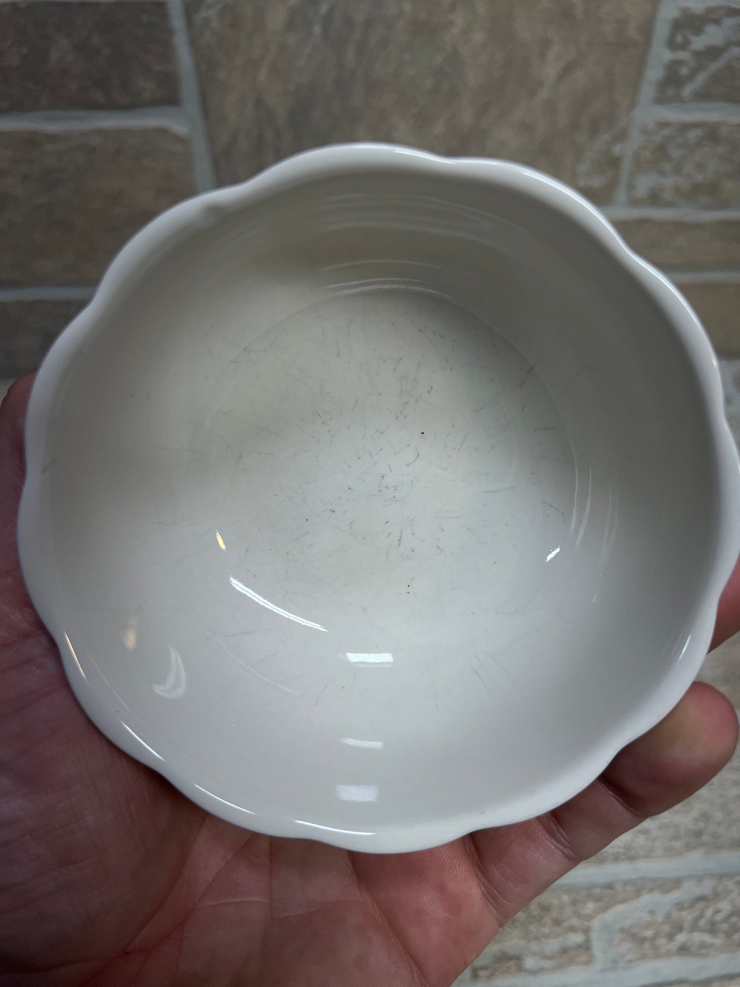 Notes: Good pre-owned condition No chips or cracks observed Light utensil marks/surface wear inside bowls (see photos) Clean and ready for use; One Bowl does have significant more wear than the other (see photos)