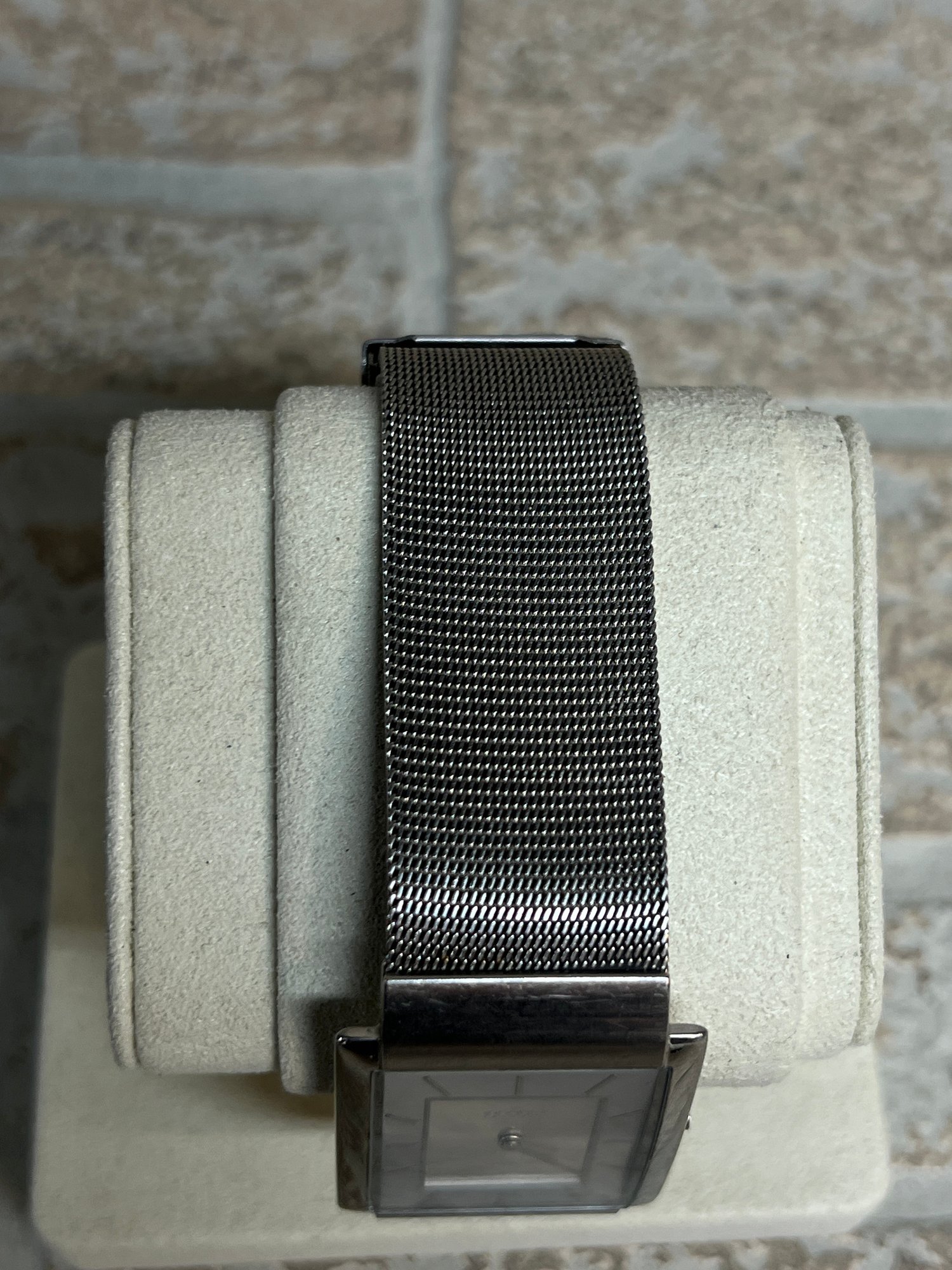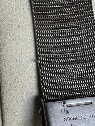 Notes: Pre-owned condition. Visible scratches and wear on case and clasp Minor scuffs consistent with regular use Mesh band in good overall shape with light wear Small section of the mesh band has a piece of metal sticking out (see photos) Untested – may require new battery Overall good cosmetic condition with typical wear. Please review all photos carefully.