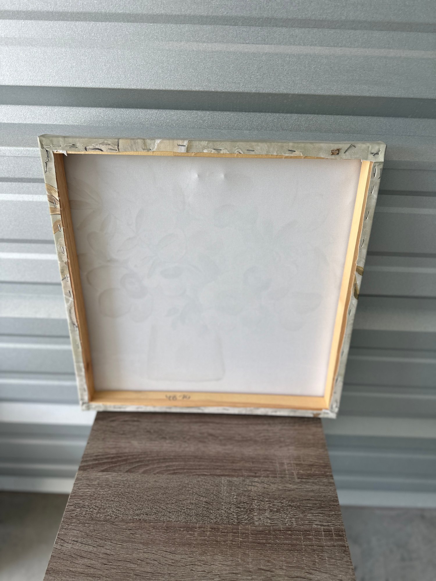 Comes ready to hang with a wood stretcher frame on the back.