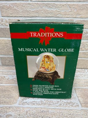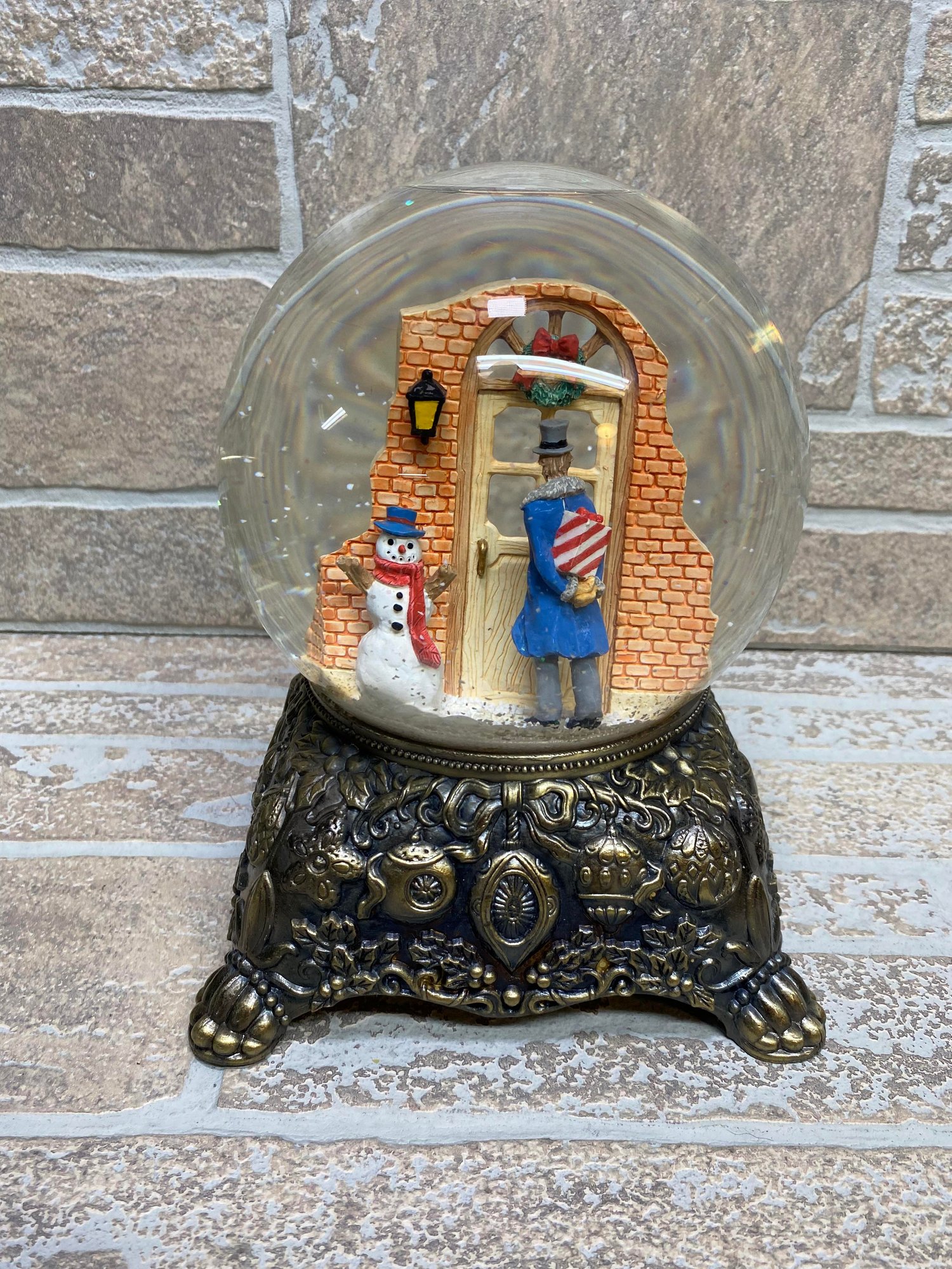 When wound, the music box plays “I’ll Be Home for Christmas”, creating a classic holiday ambiance. The globe contains snow particles that swirl when shaken, adding to the seasonal charm.
