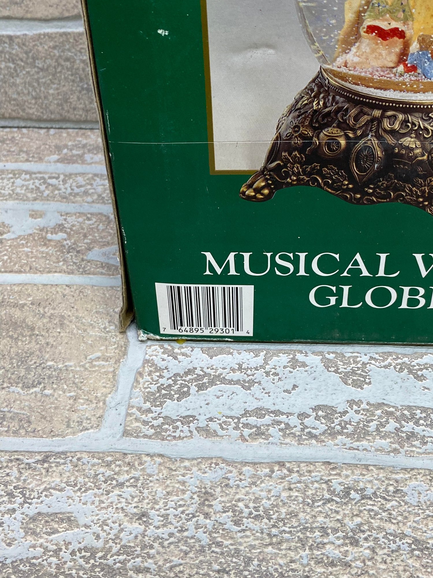 Notes: Good pre-owned condition: Music box plays as intended Snow effect works well No cracks observed in the globe Base shows light wear/tarnish consistent with age Original box included with visible wear (creases, edge wear, small tears)