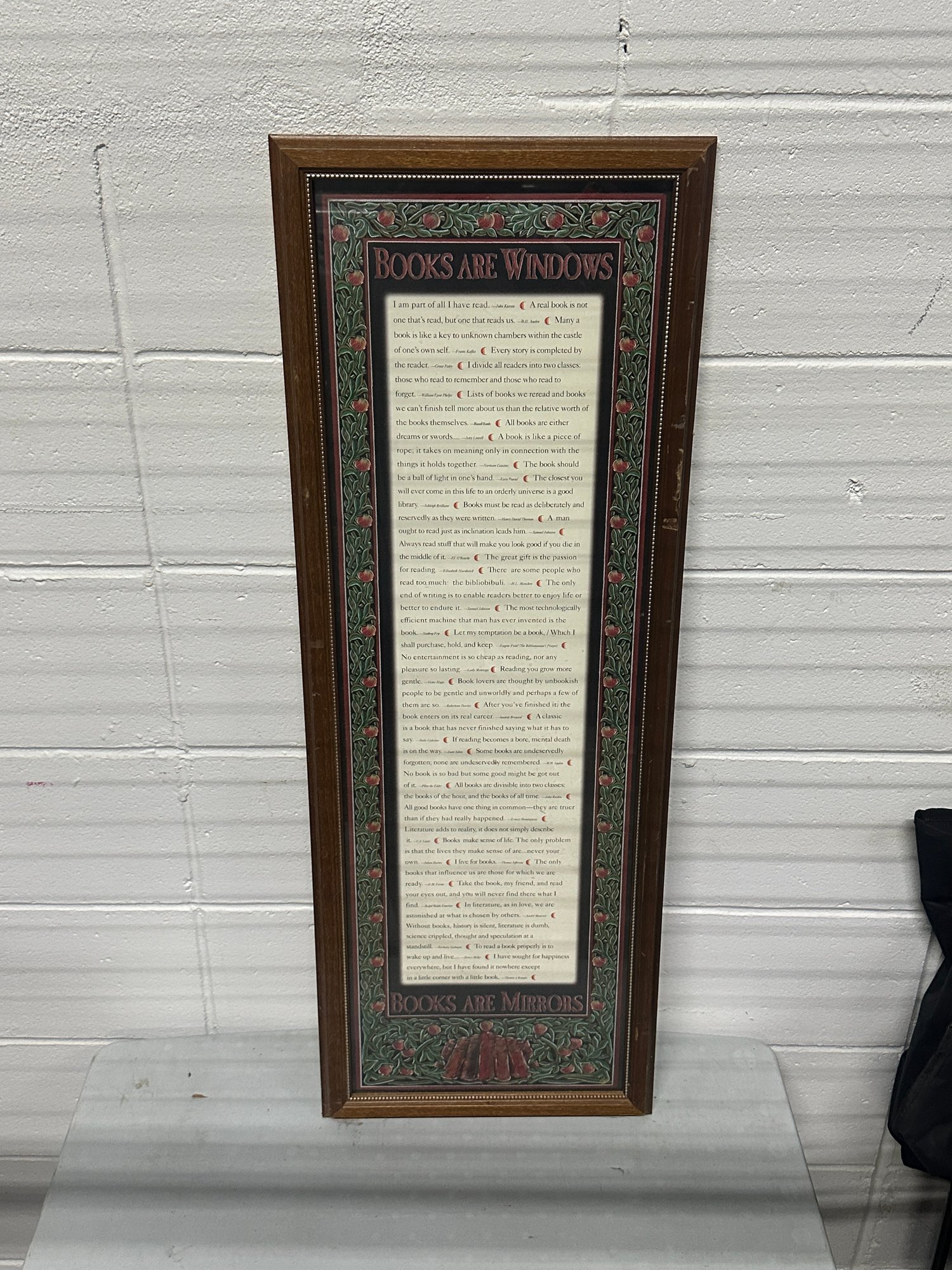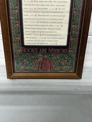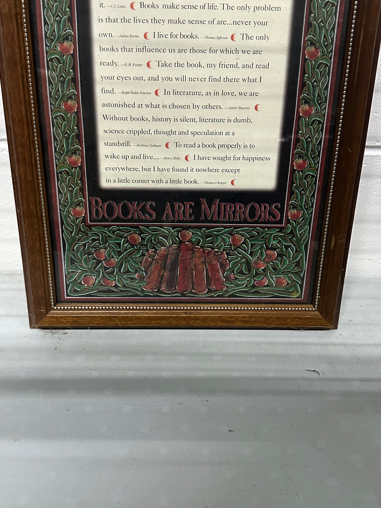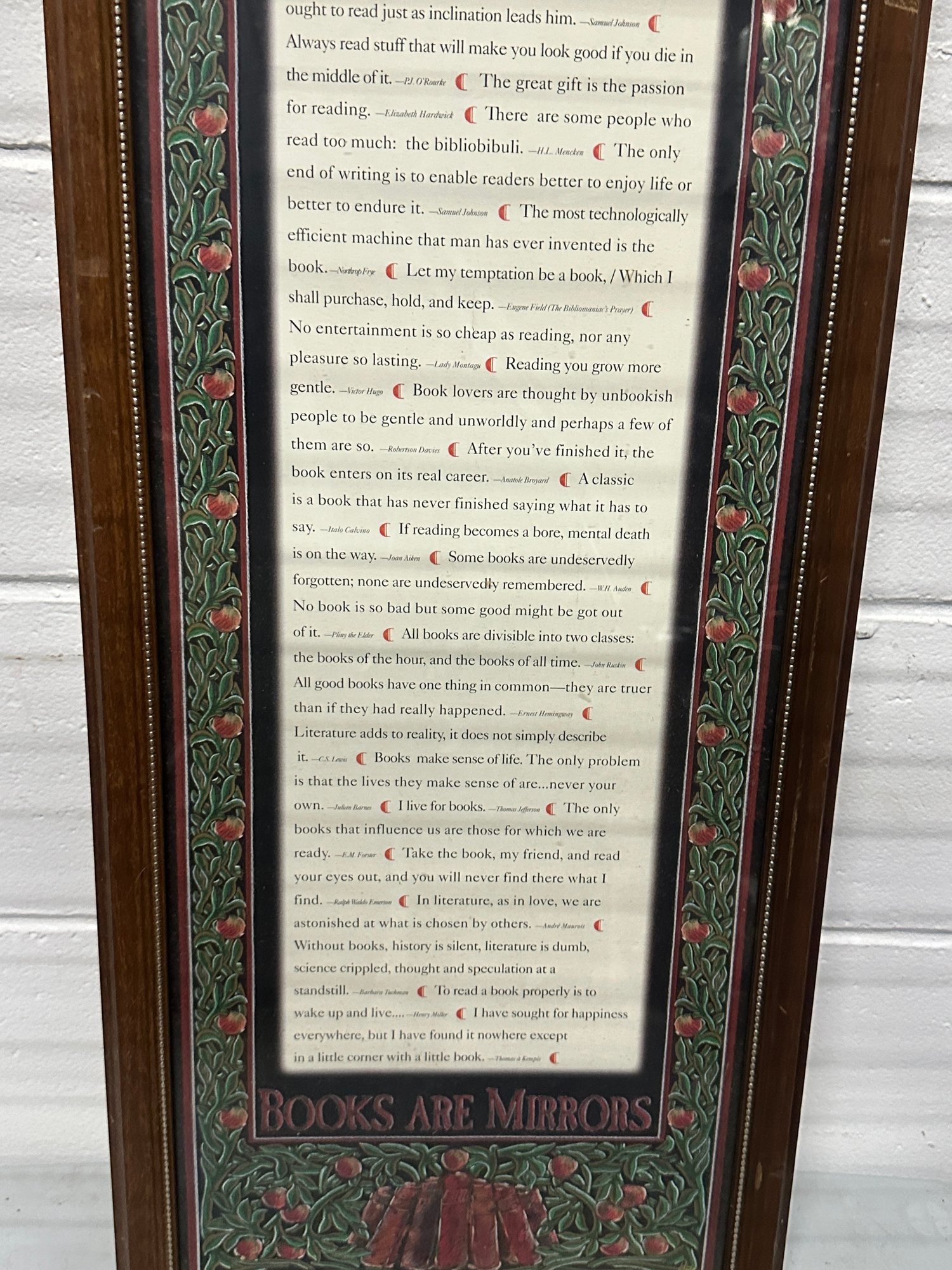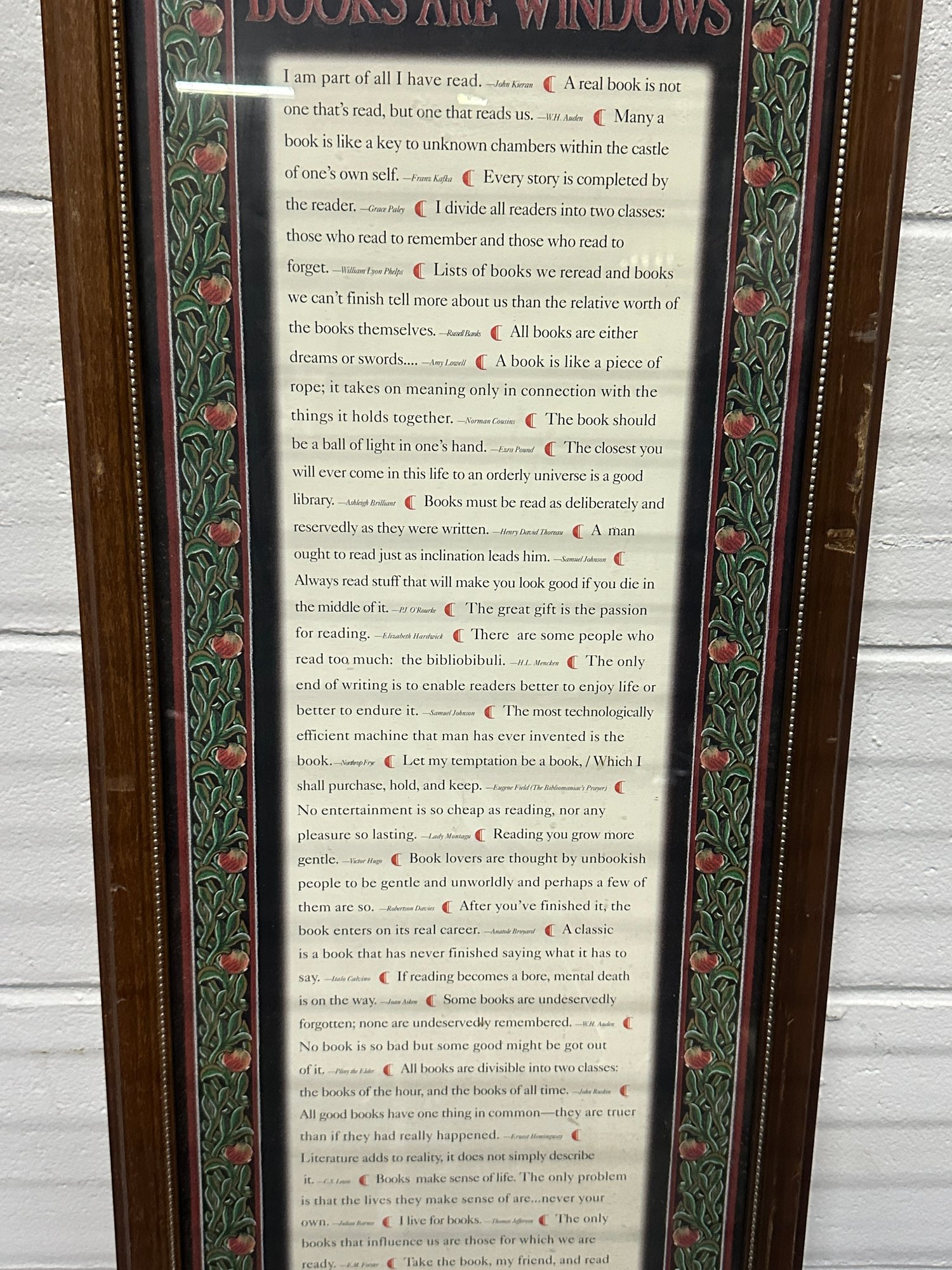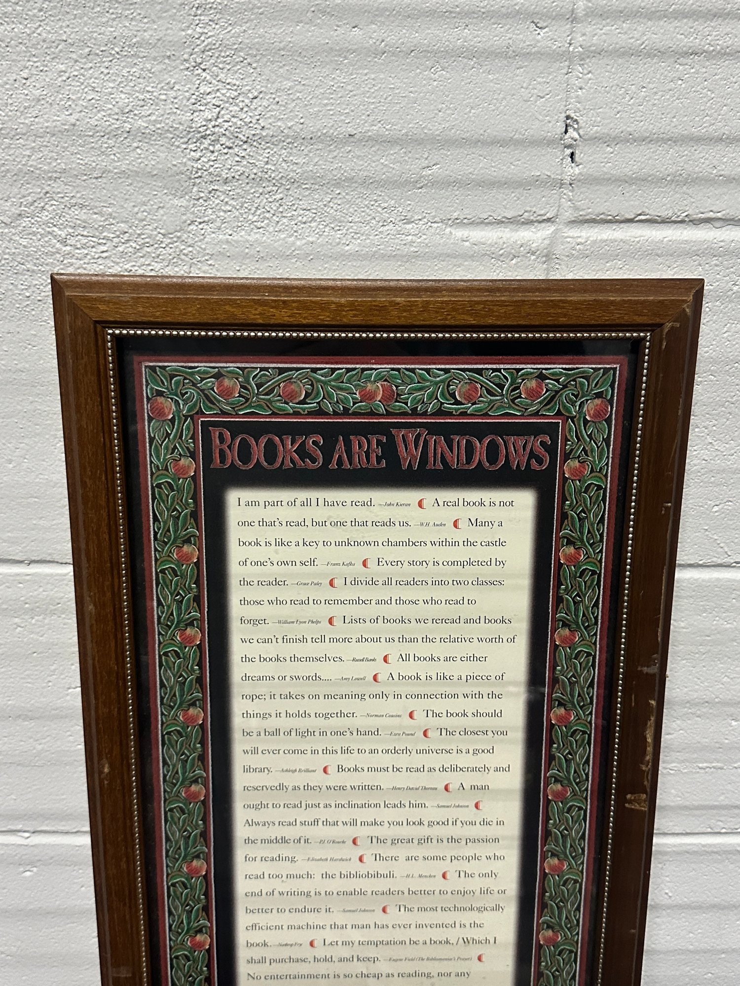Vintage framed literary quote print titled “Books Are Windows” and “Books Are Mirrors”, featuring a collection of classic quotes about reading and literature.