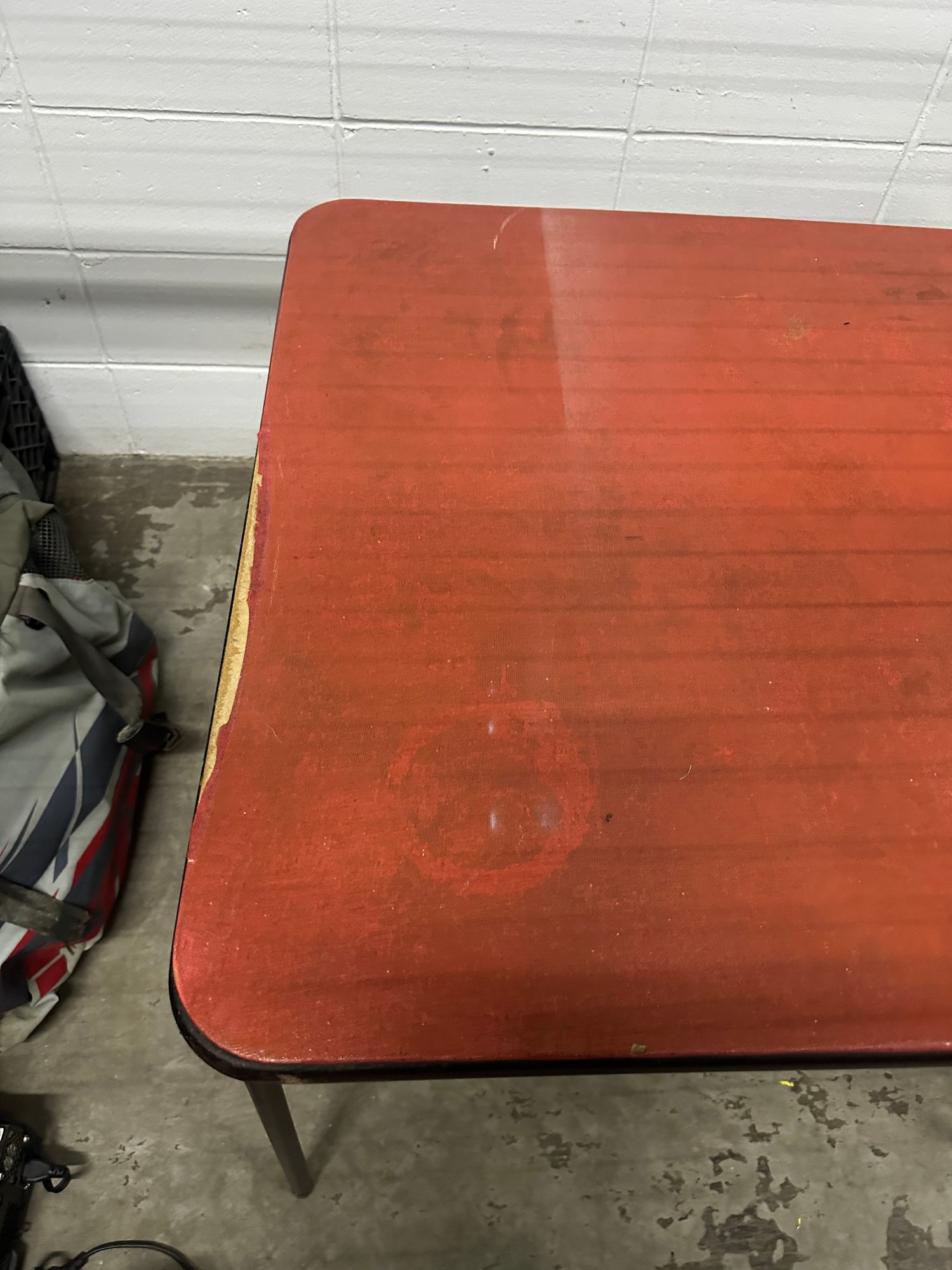 Visible wear, scratches, and surface marks on tabletop