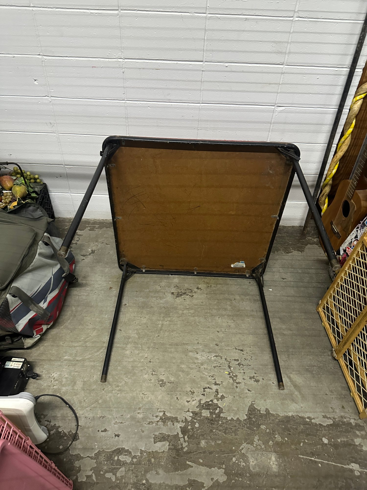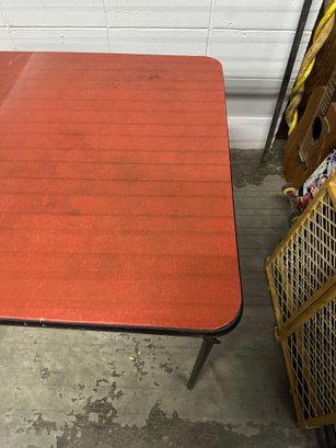 Notes: Pre-owned vintage condition Visible wear, scratches, and surface marks on tabletop Some discoloration/ring marks present (see photos) Edge wear/chipping in spots Structurally functional Legs fold properly Sold as-is