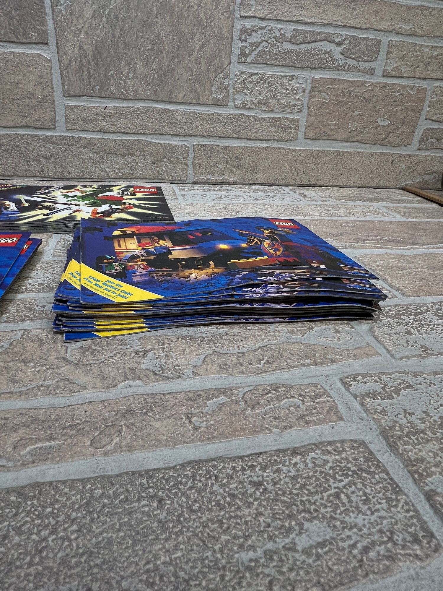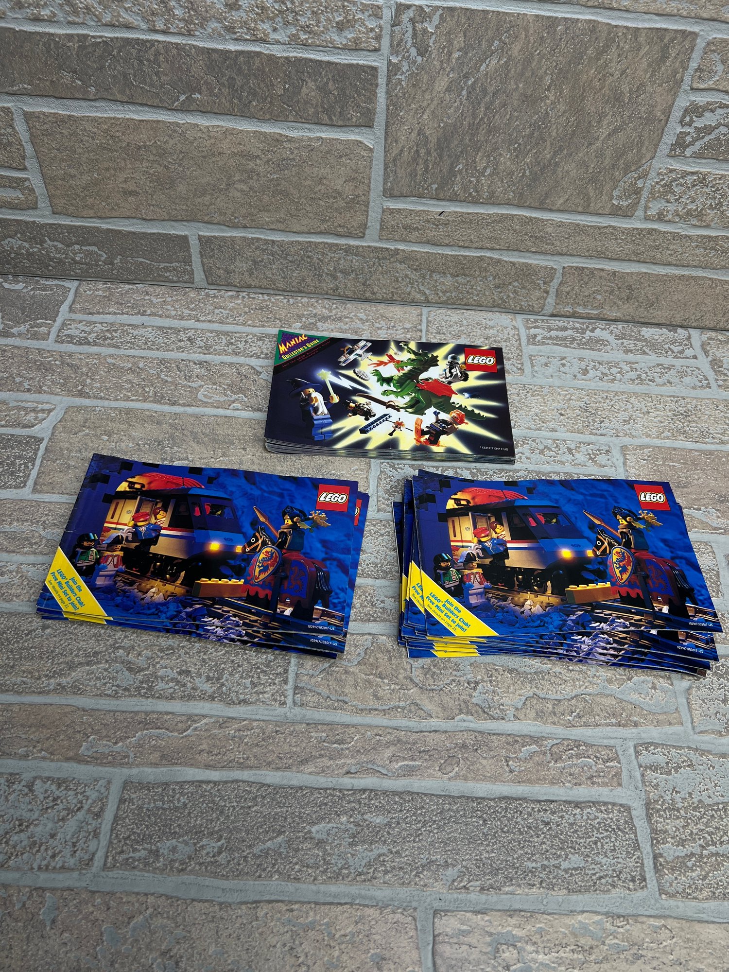 34x LEGO Builder’s Club catalogs (train/knight cover artwork)