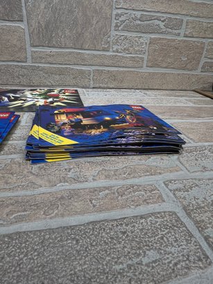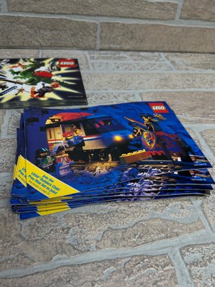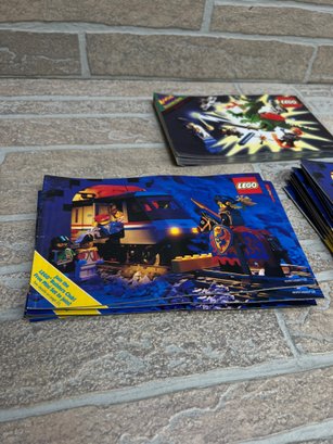 Lot of vintage LEGO catalogs and promotional booklets, including a mix of Builder’s Club mailers and collector-style guides from the 1990s era.