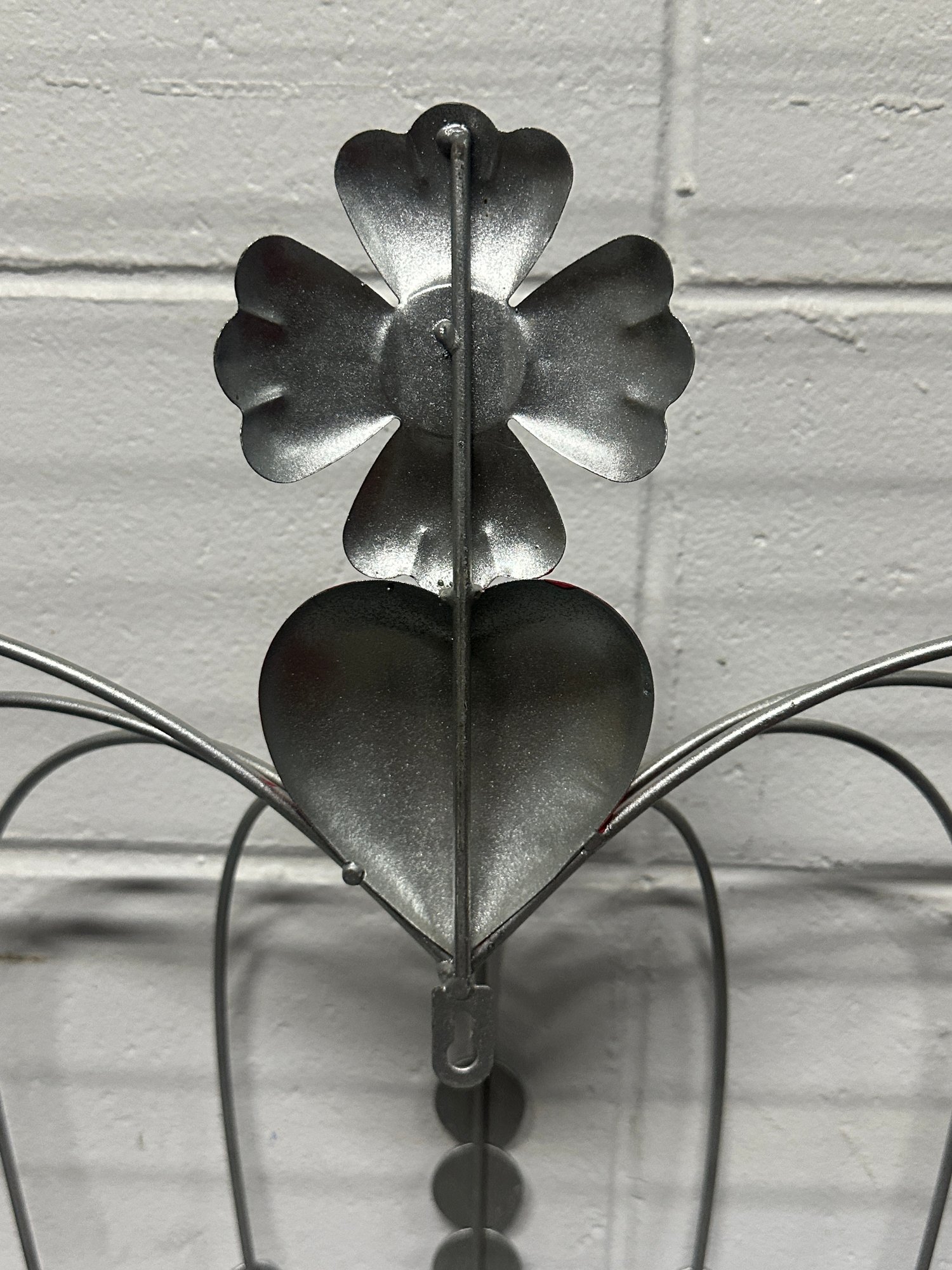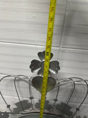 Constructed of lightweight metal with curved crown detailing and inset jewel-like accents throughout. Includes mounting slot on back for easy wall hanging.