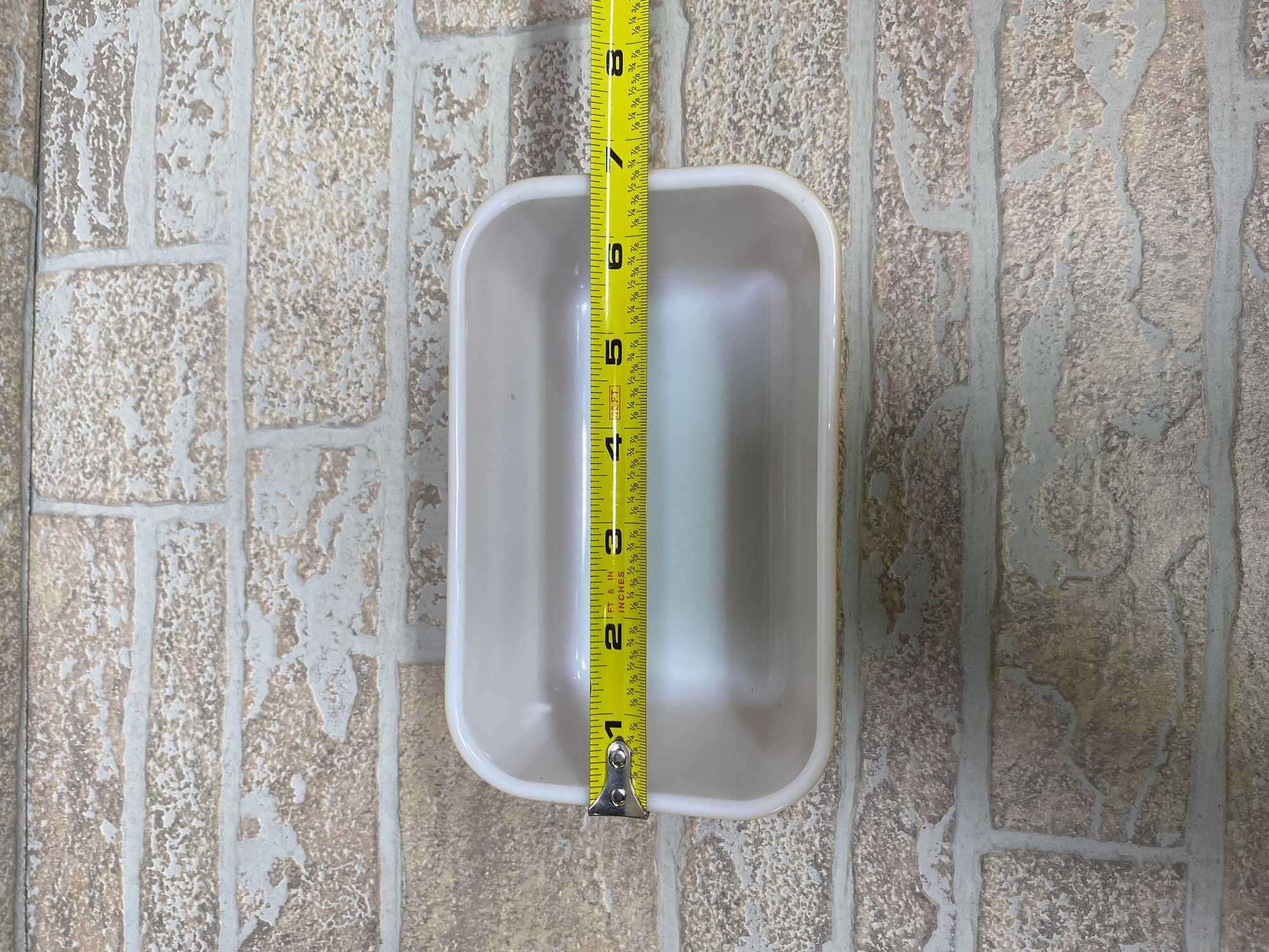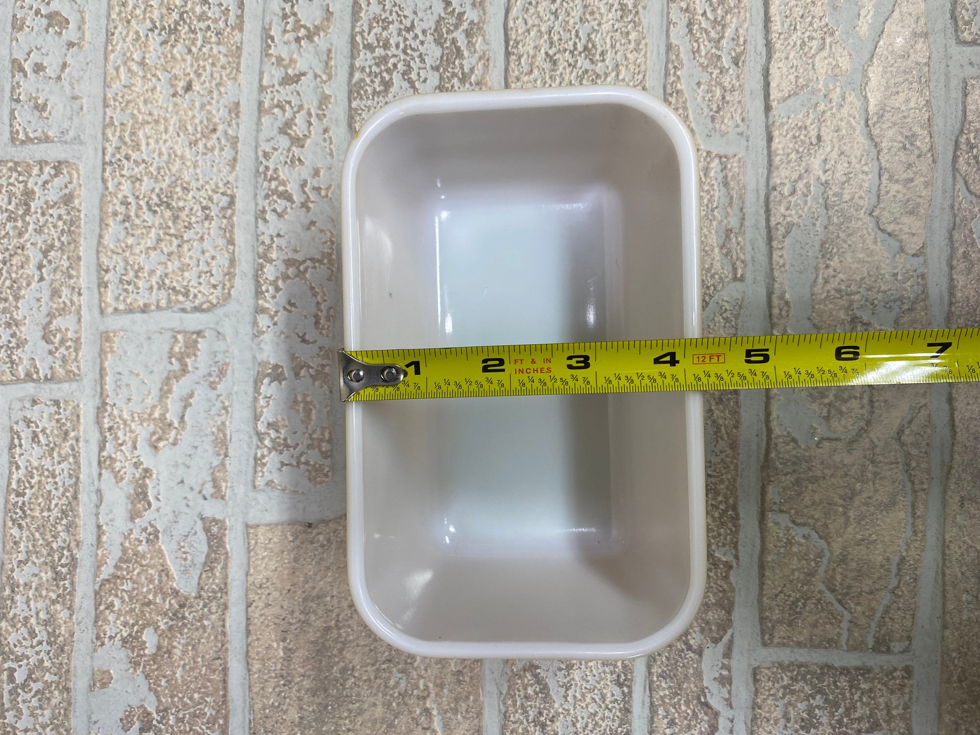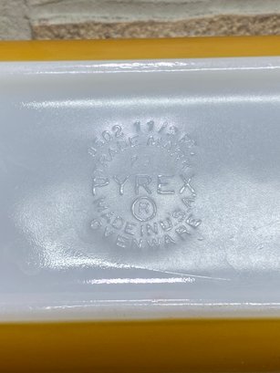 This is a rectangular Pyrex dish, great for storage, baking, or display. A staple for collectors of vintage kitchenware and Pyrex enthusiasts.