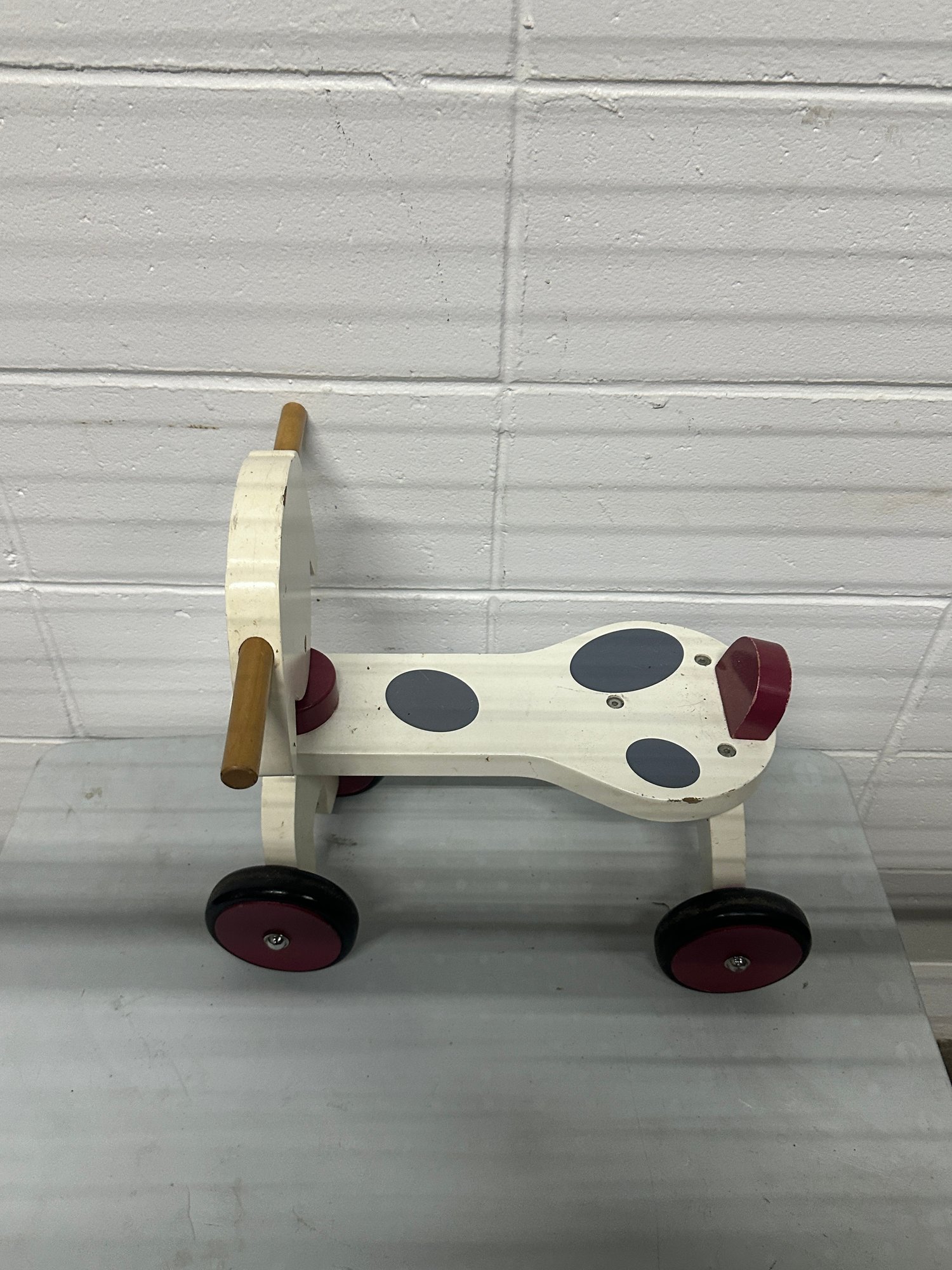 This sturdy push/ride toy is perfect for toddlers learning balance and mobility. Designed with a wide base and smooth-rolling wheels for stability.