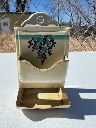 Vintage Wall Hanging Blueberry Metal Tin Matchbox Holder