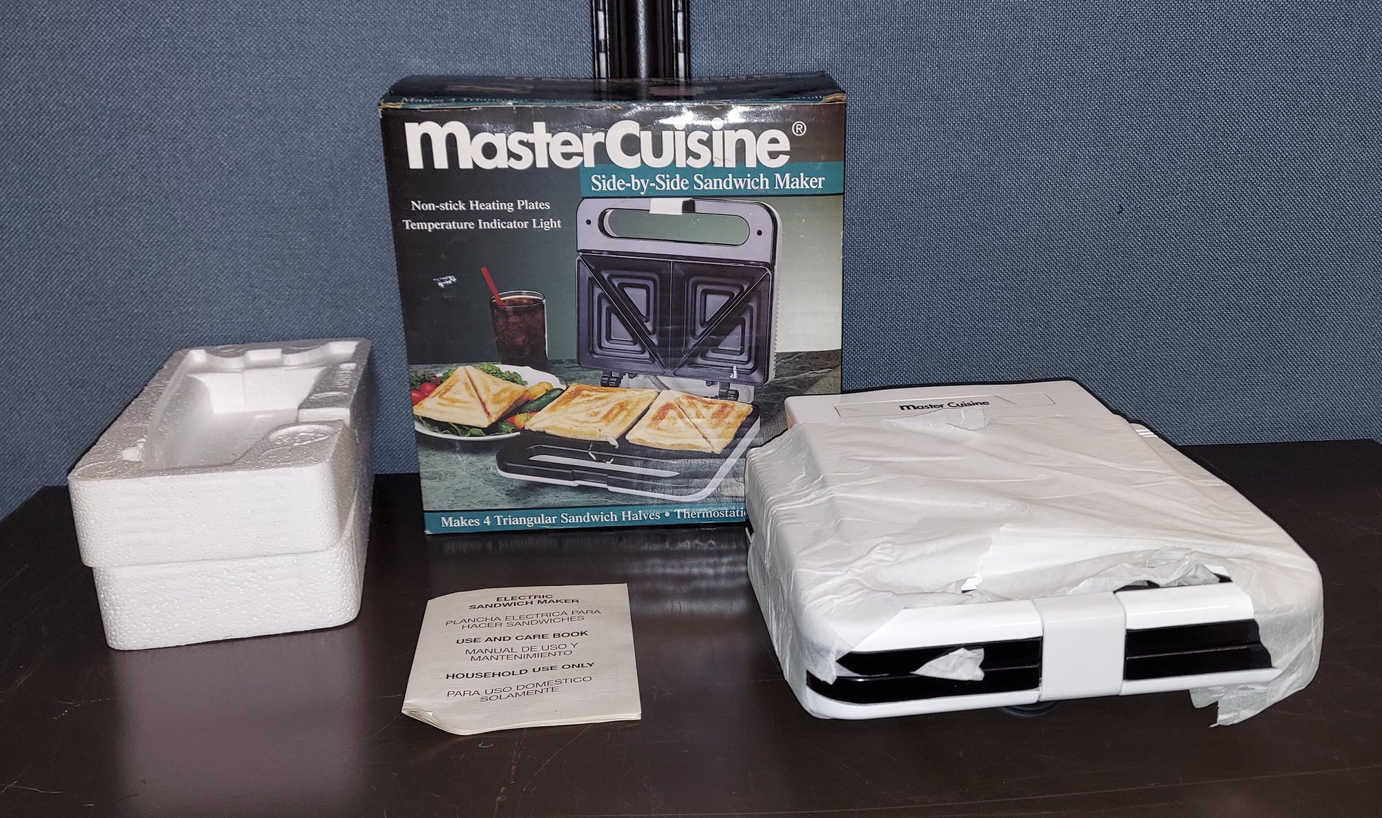 Box has wear. Took sandwich maker out of box and it still had original paper wrapped around it, so did not open it.