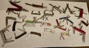 1 ESP Bienne wood handle excellent condition, 1 Imperial vg and 1 USA Military Knife, 1 screwdriver very loose flops when opened, other parts very good
