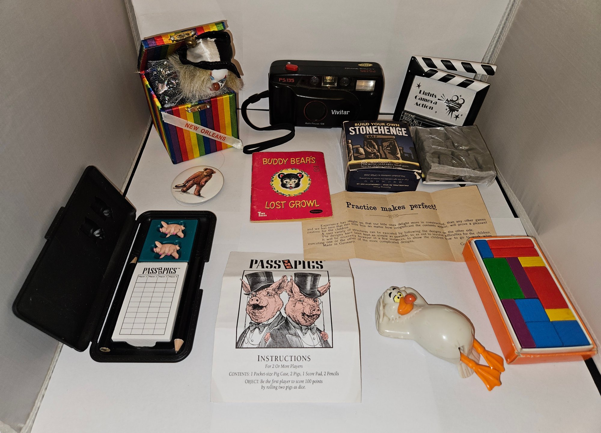 Miscellaneous Lot B Pass Pigs, Stonehedge, Buddy Bear, etc. Buddy Bear book has a white label sticker over previous owner's name. Copyright 1949. H7n