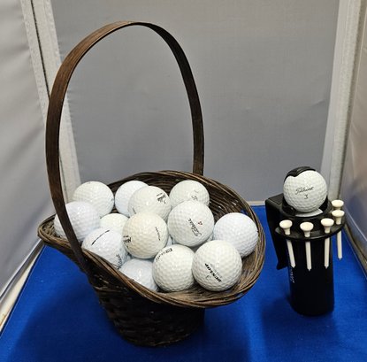Basket used as container, handle comes off do beware. This lot comes with Item that has 3 golf balls, six tees and Spaulding logo.