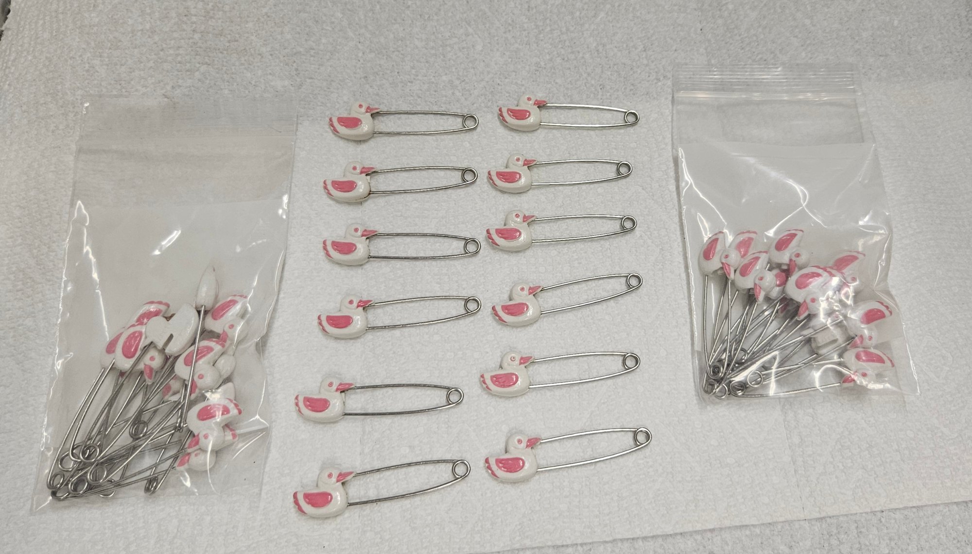Lot 6-127 Three Dozen Pink Duck Diaper Pins (Top 2-Drawer)