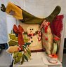 Burlap tree pillow 14"high and snowman pillow, approx 12"x17", need bit of repair
