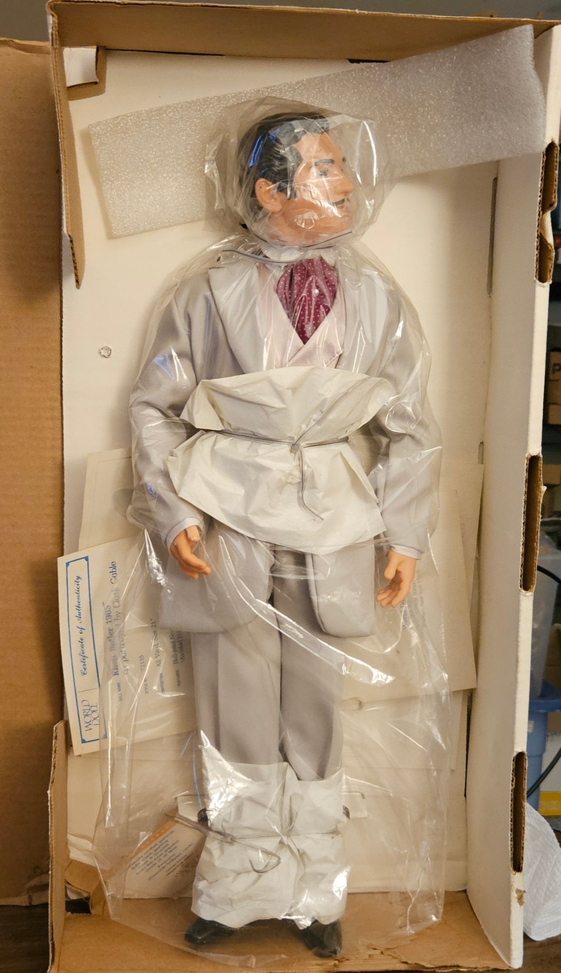 Box poor, doll still attached in box, never taken off backing, doll like new, fashioned after Cary Grant in Gone with the Wind.