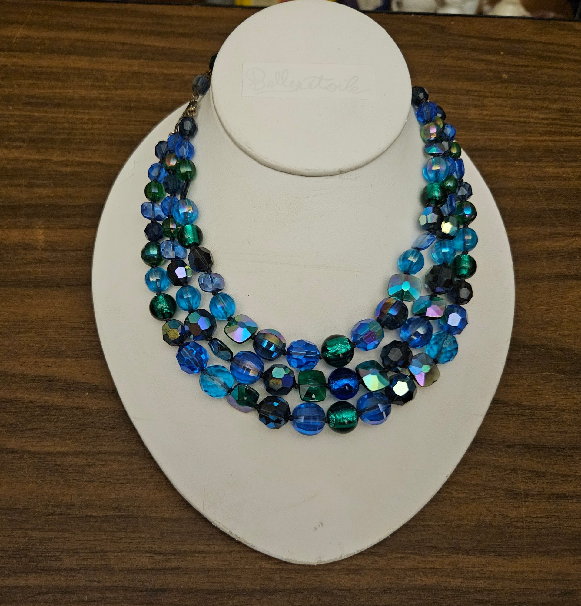 Aurora Borealus Crystal beads with a bit of faceted glass. No markings, 50's? Form not included.
