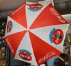Adjustable; measured from very bottom of pole to tip, 4'4" to 6'6". Diameter approximately 5'3" not counting points. Tip has a crack (last pic). Does not affect functioning. Other than Tip, umbrella in great condition. The plastic case has seen its better day and is considered poor. Ripped on top. Handle broke but plastic is enough to protect umbrella.