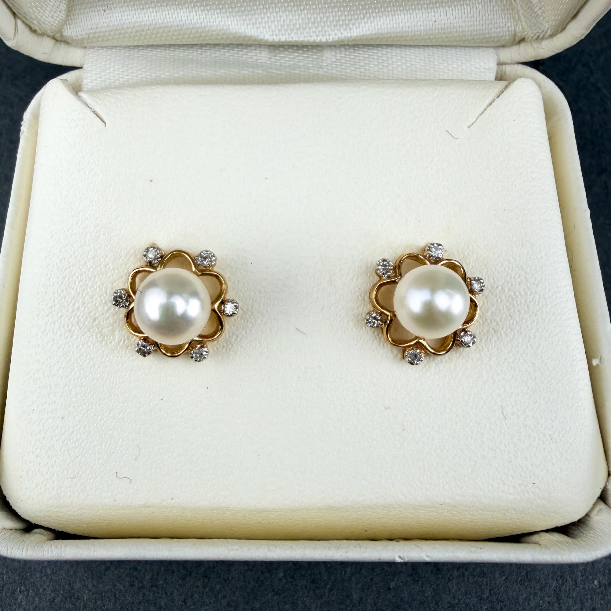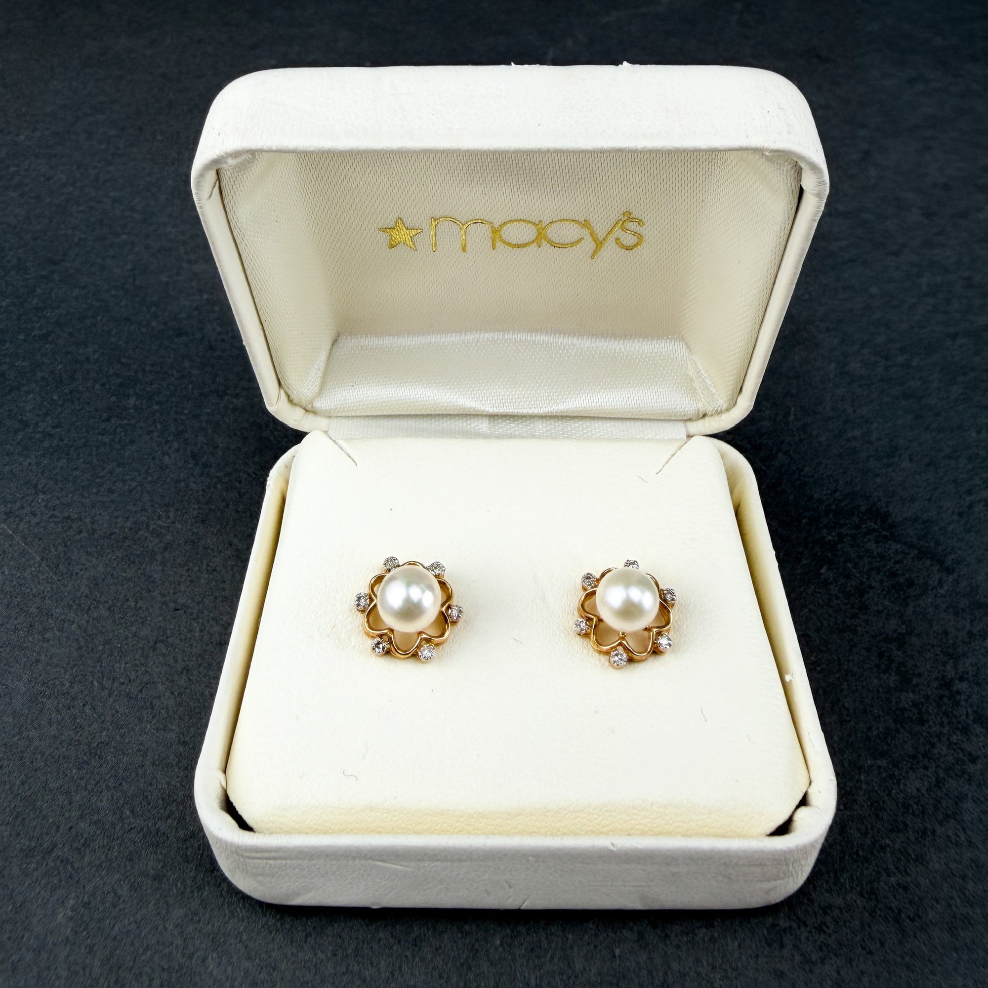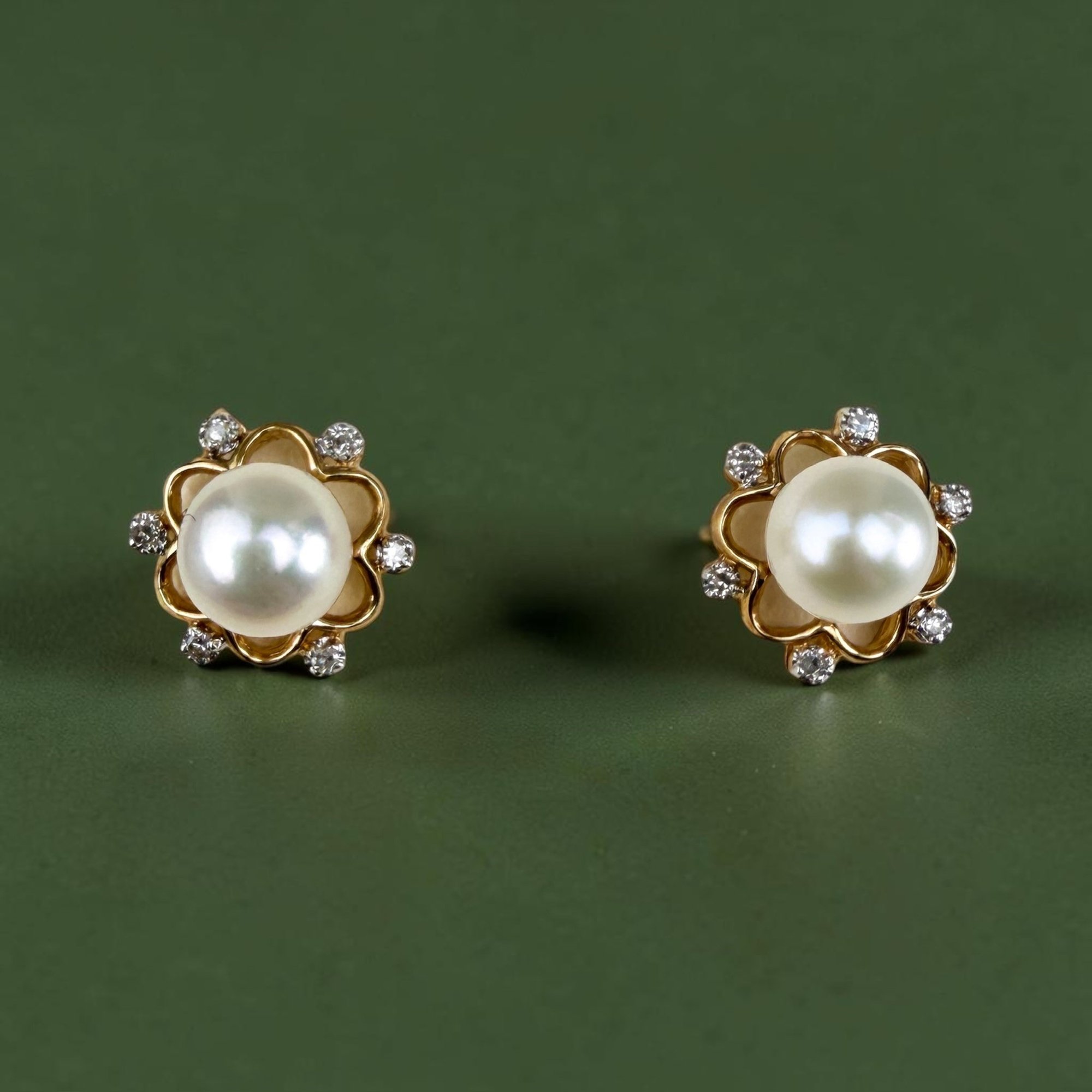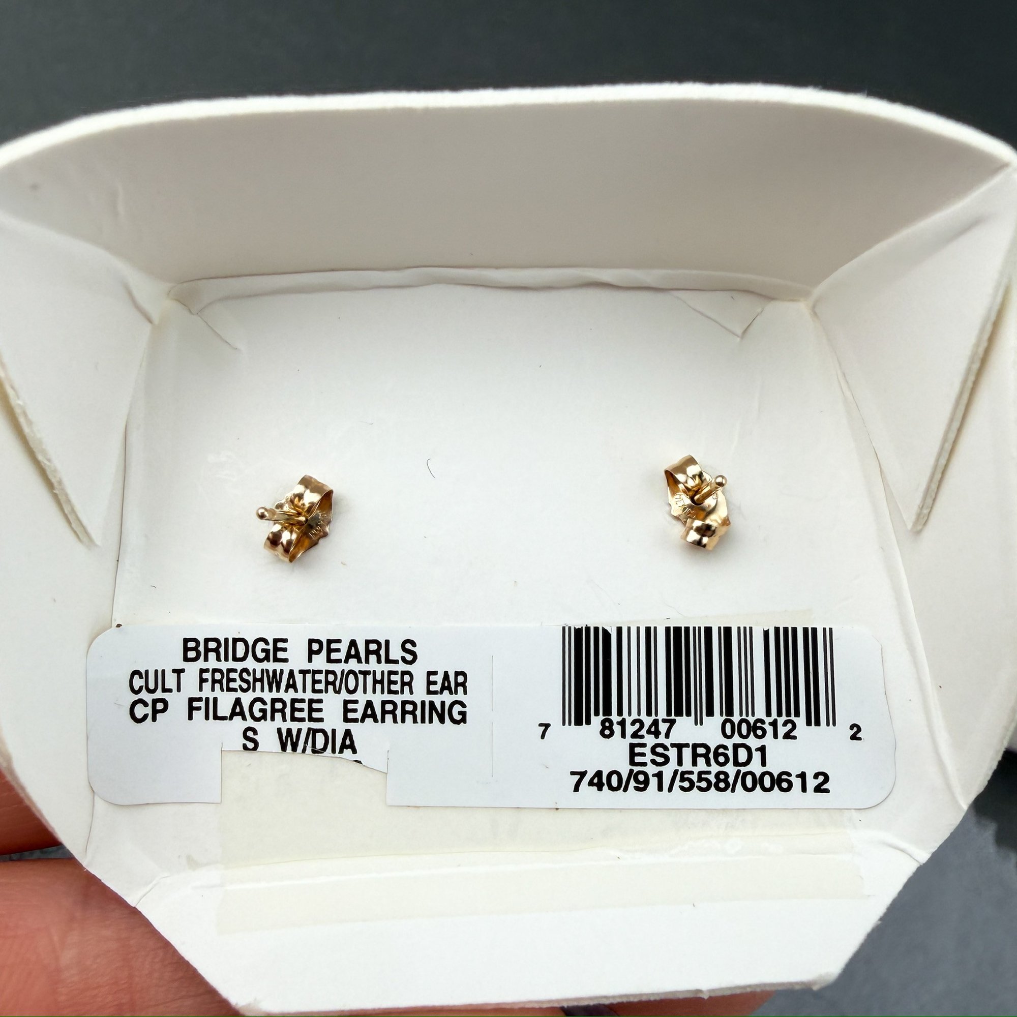 14kt yellow gold Freshwater pearl filigree Style earrings