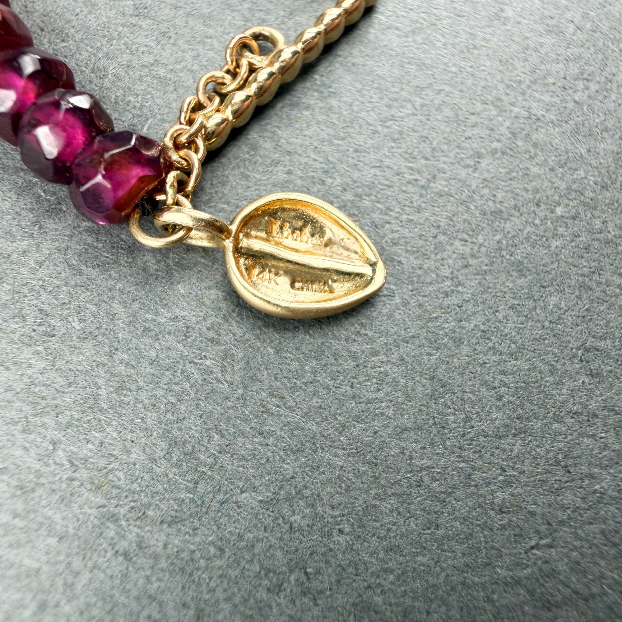 Luxurious Faceted garnets with intermittent gold leaves and gold toggle clasp