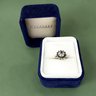 14kt white gold with diamond cluster with sapphire surround, and central sapphire tip.