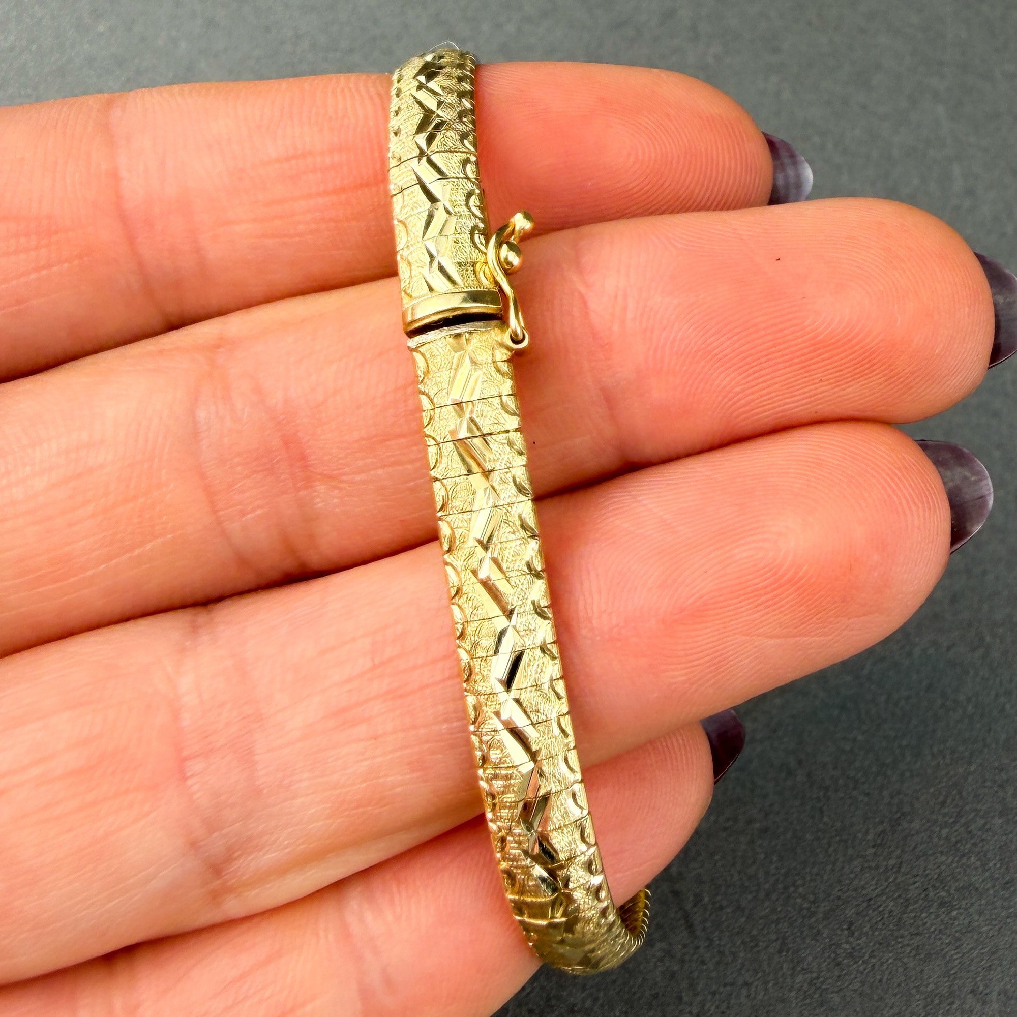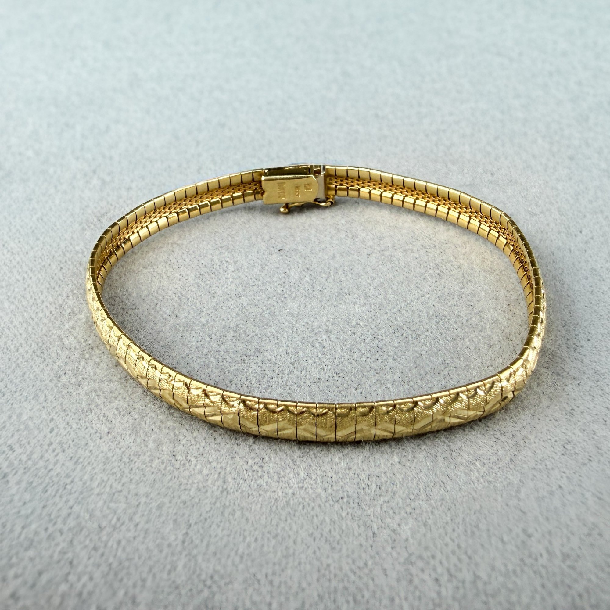 Italian 14kt gold with etched zig zag design