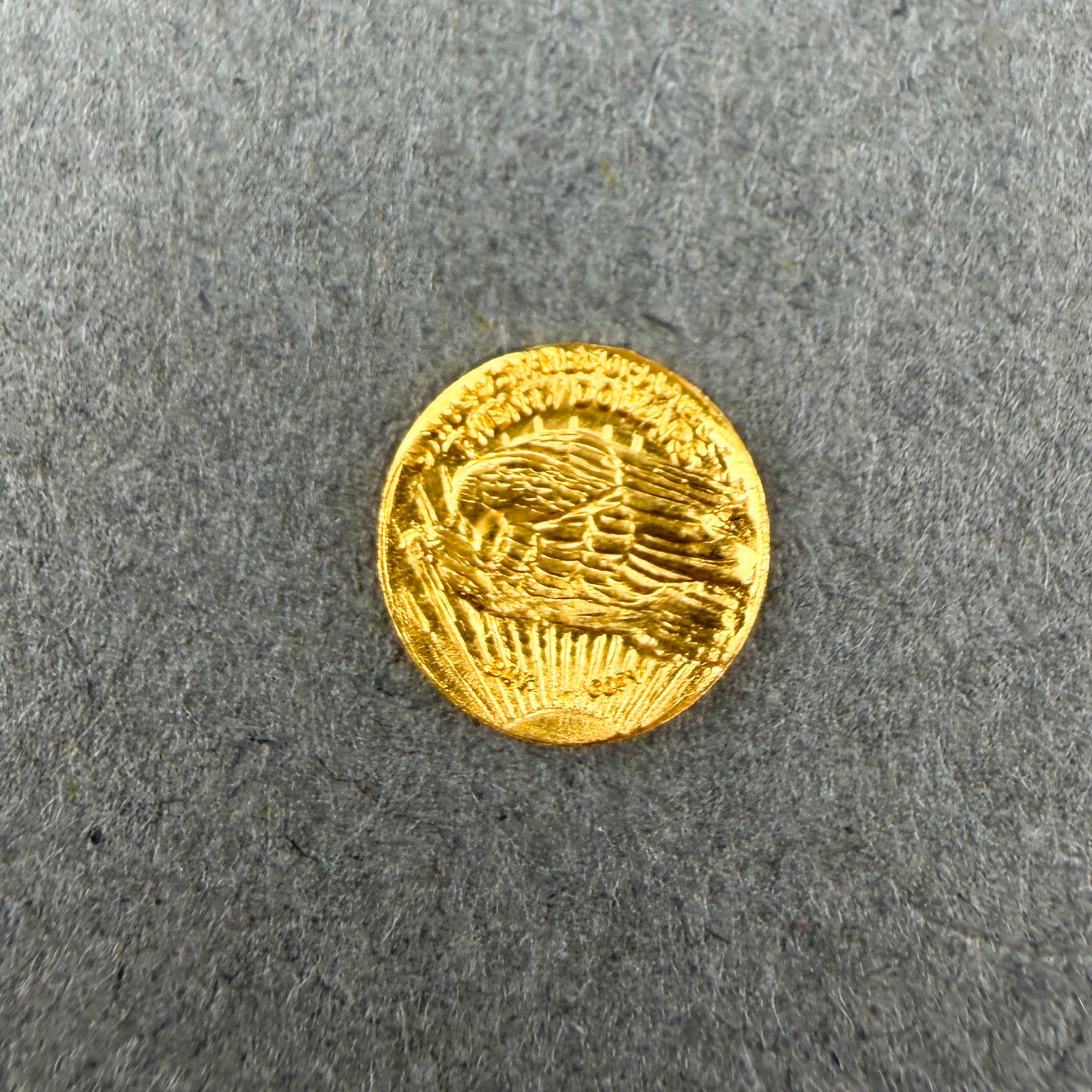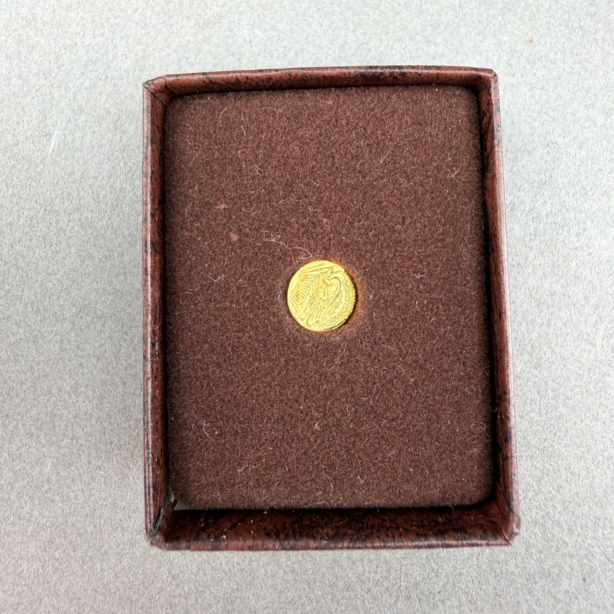 From the US Gold Depository, this 1908 miniature coin is made of 24kt yellow gold and is cased in the original packaging.