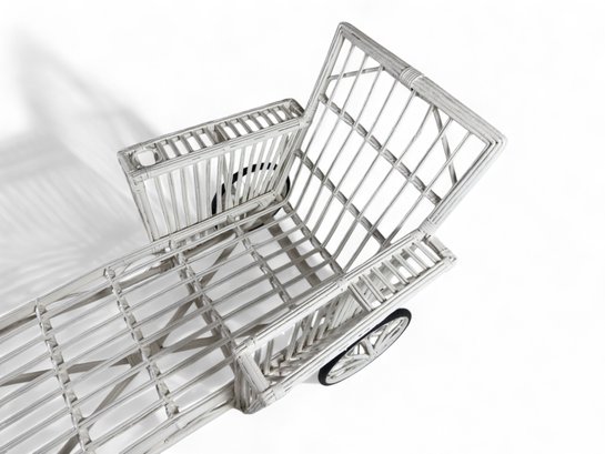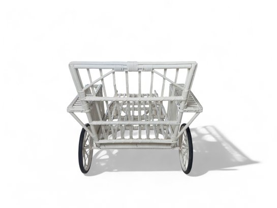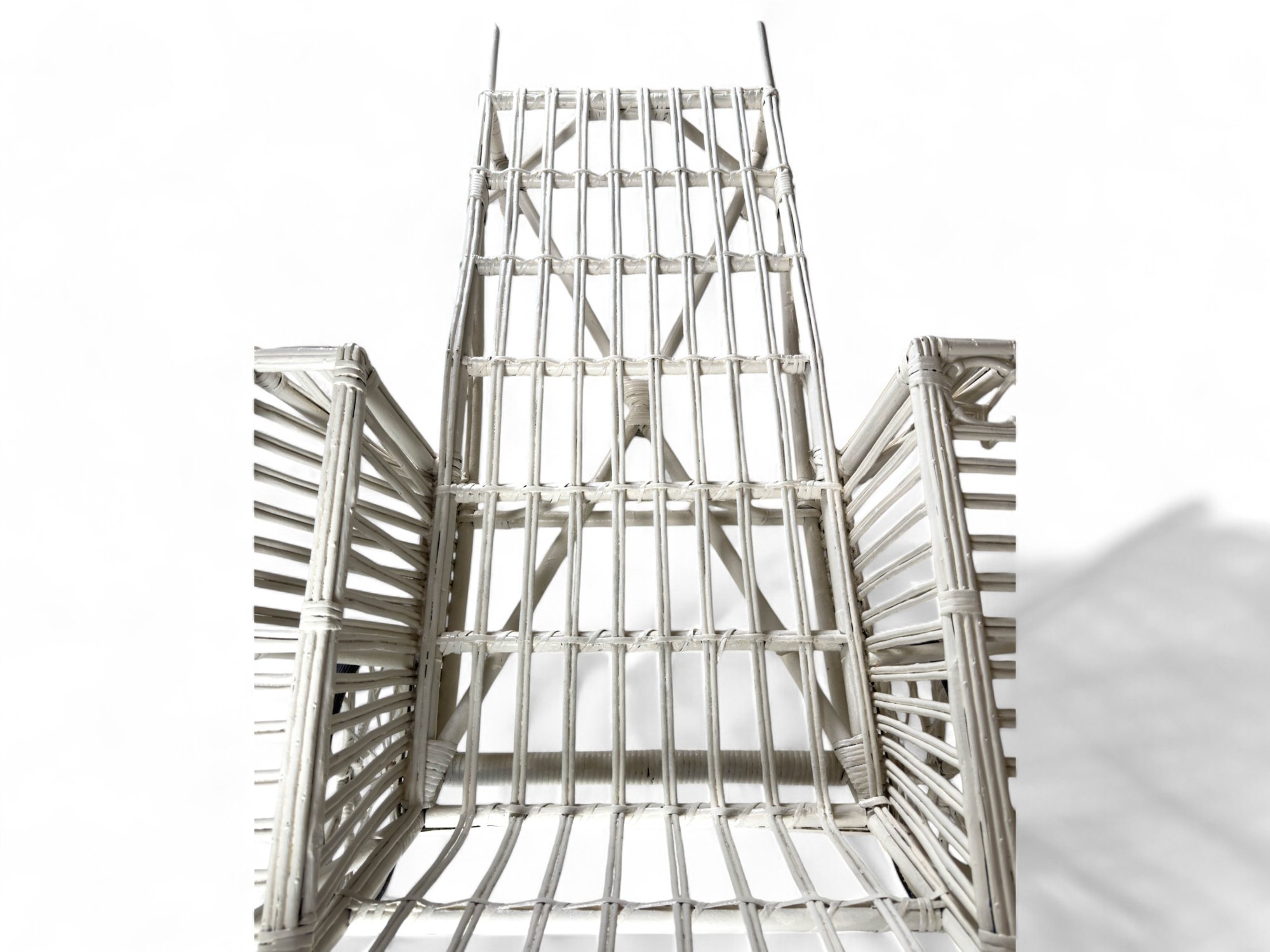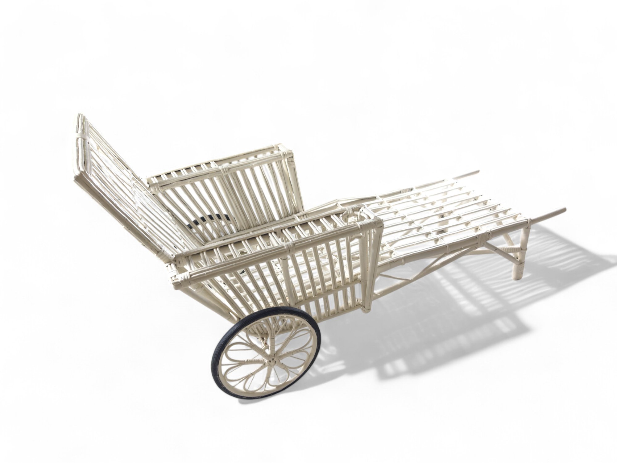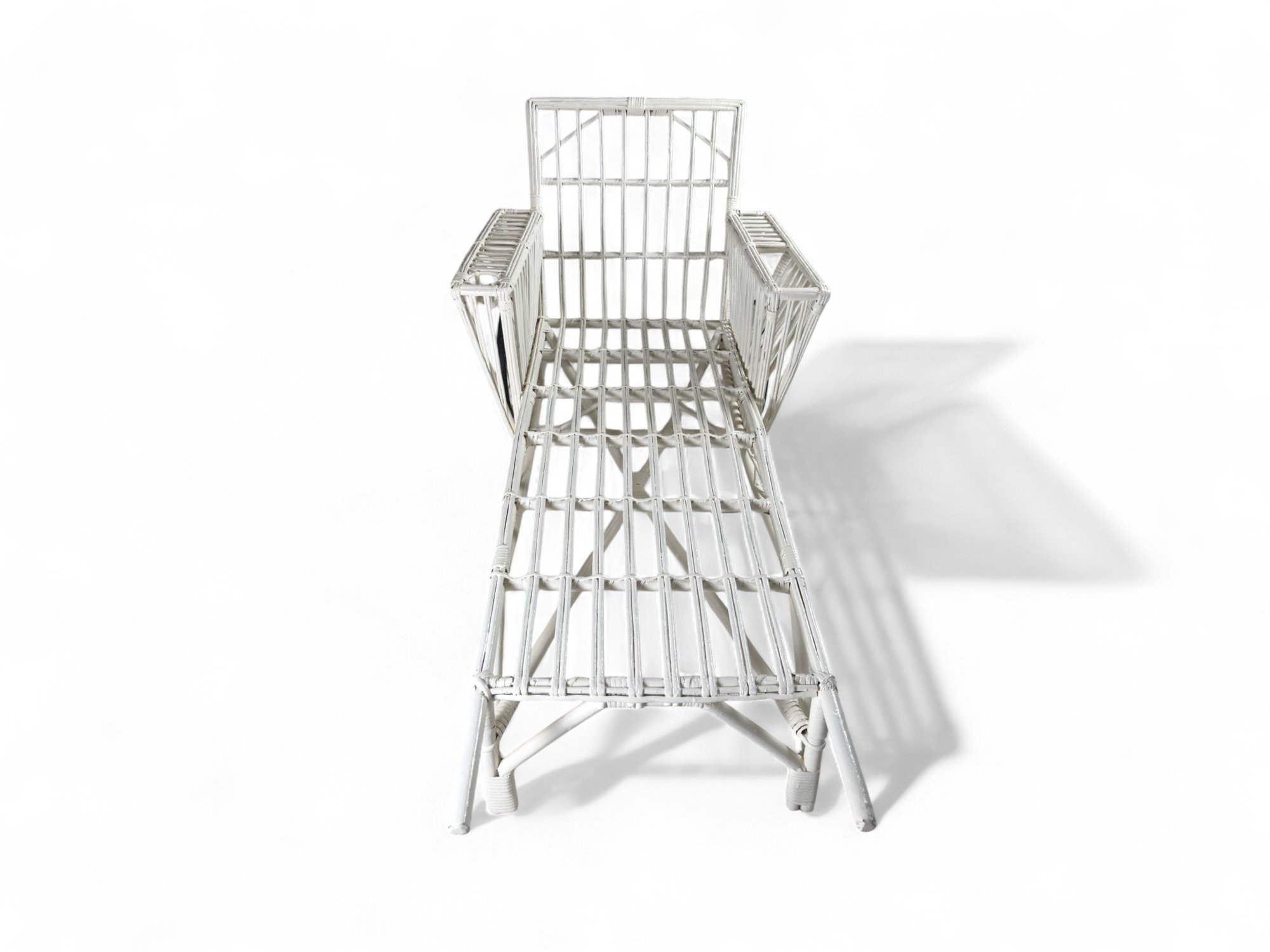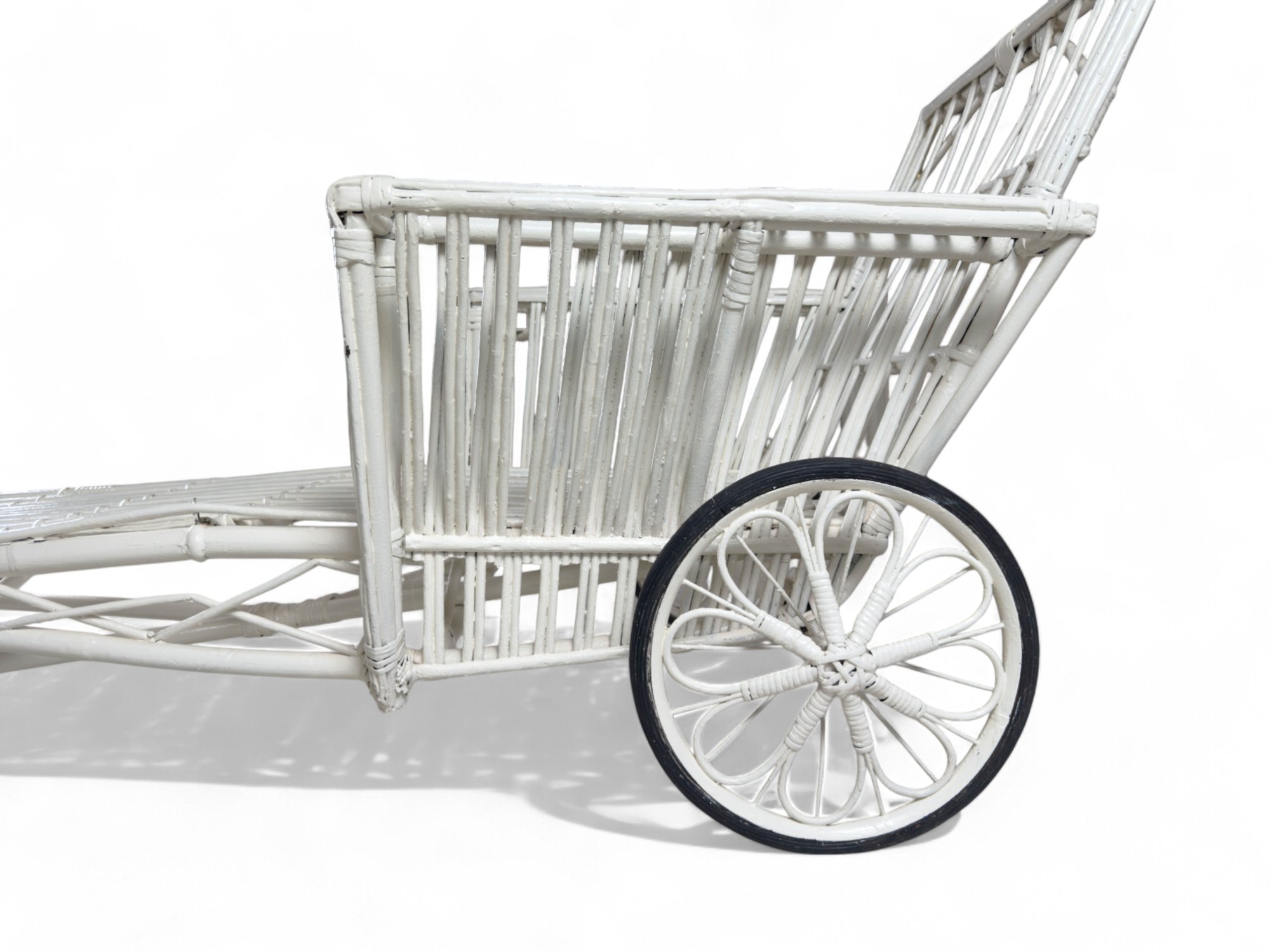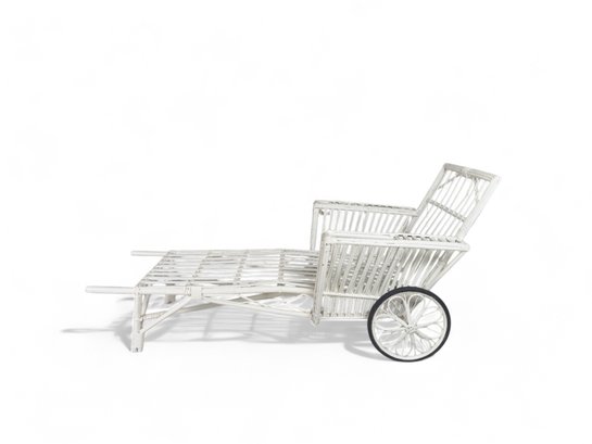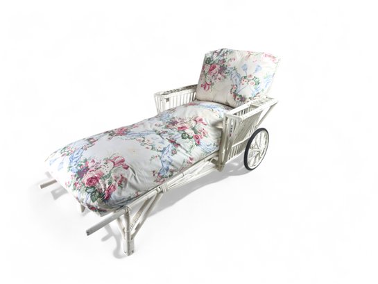 Excellent Condition, 1930's presidential arm seating chaise lounge with back wheels, painted white. Comes with upholstered cushions in floral motif.