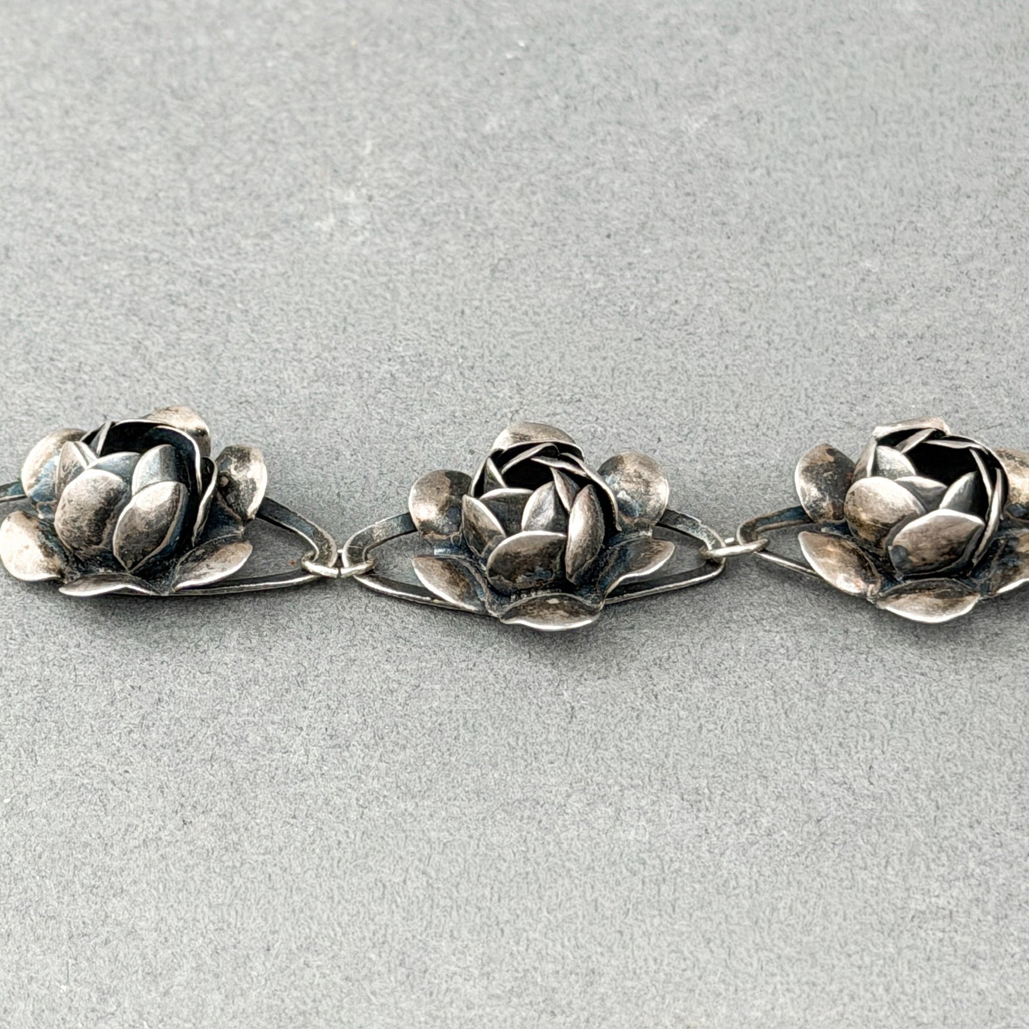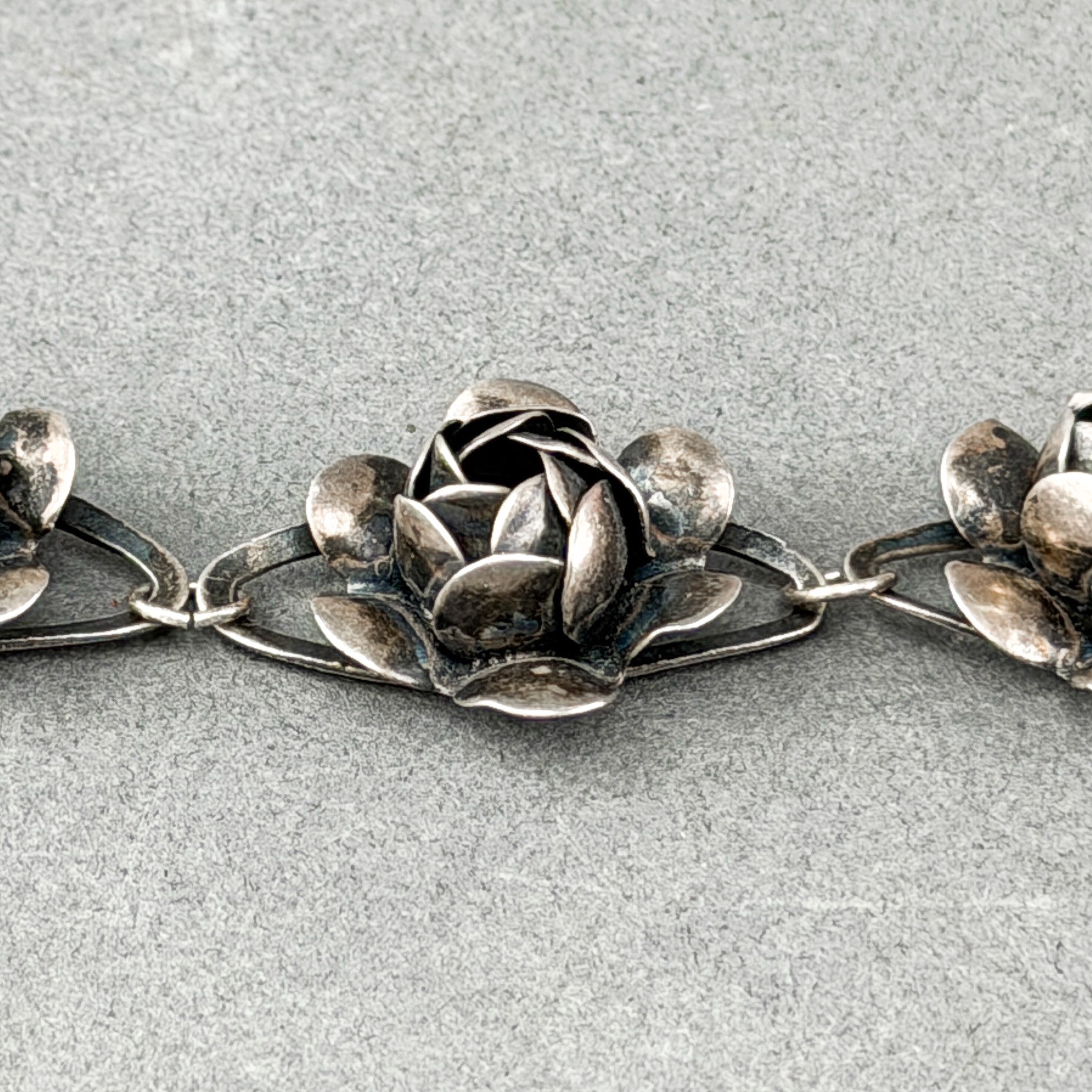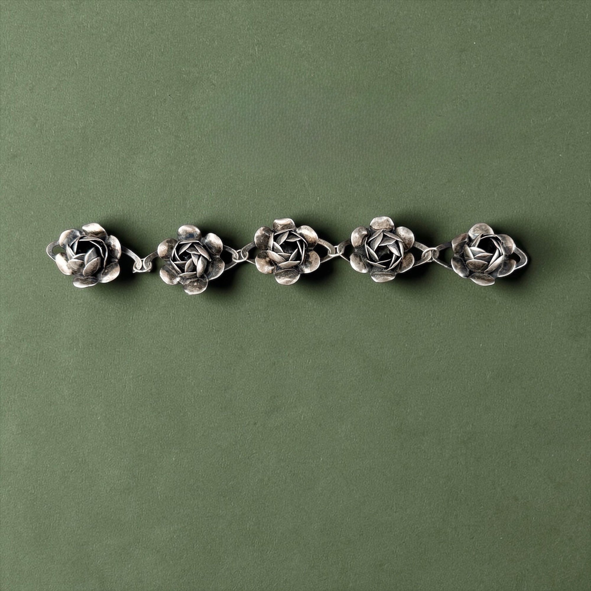 c. 1942-44, coro Sterling silver craft floral link bracelet and an antique and sterling silver floral pin.