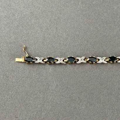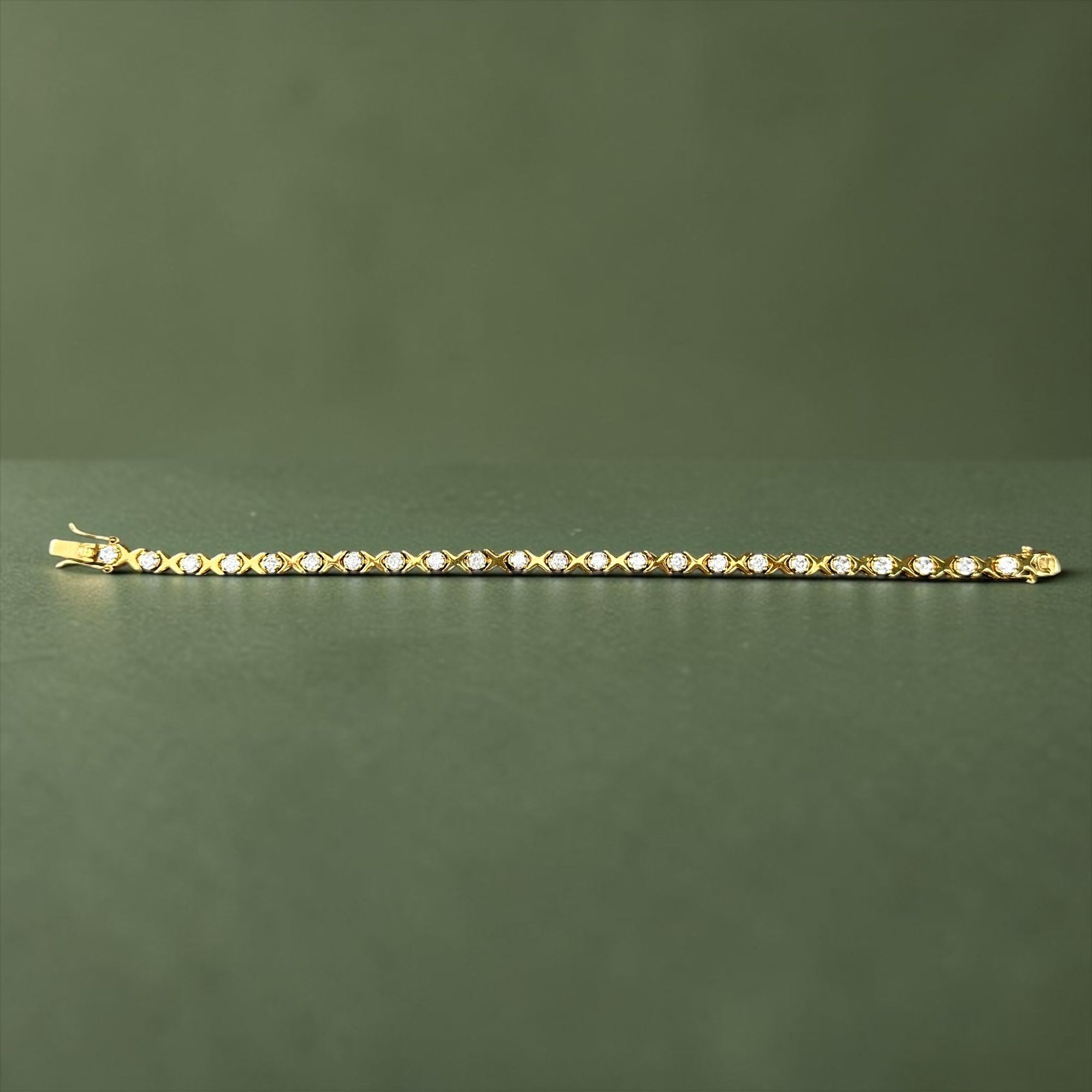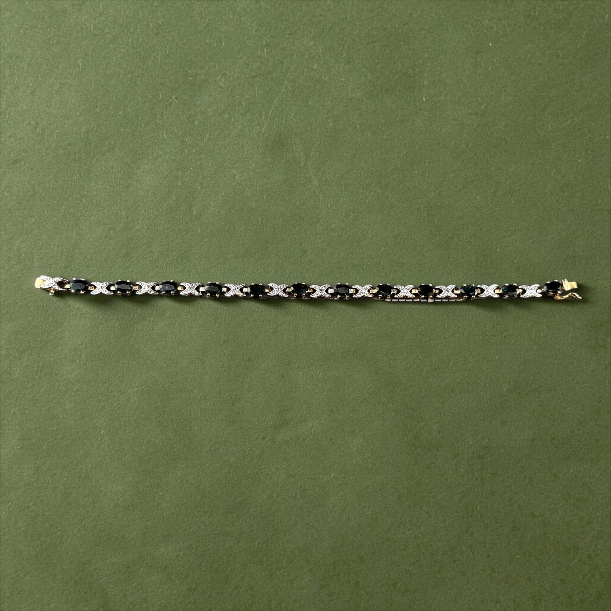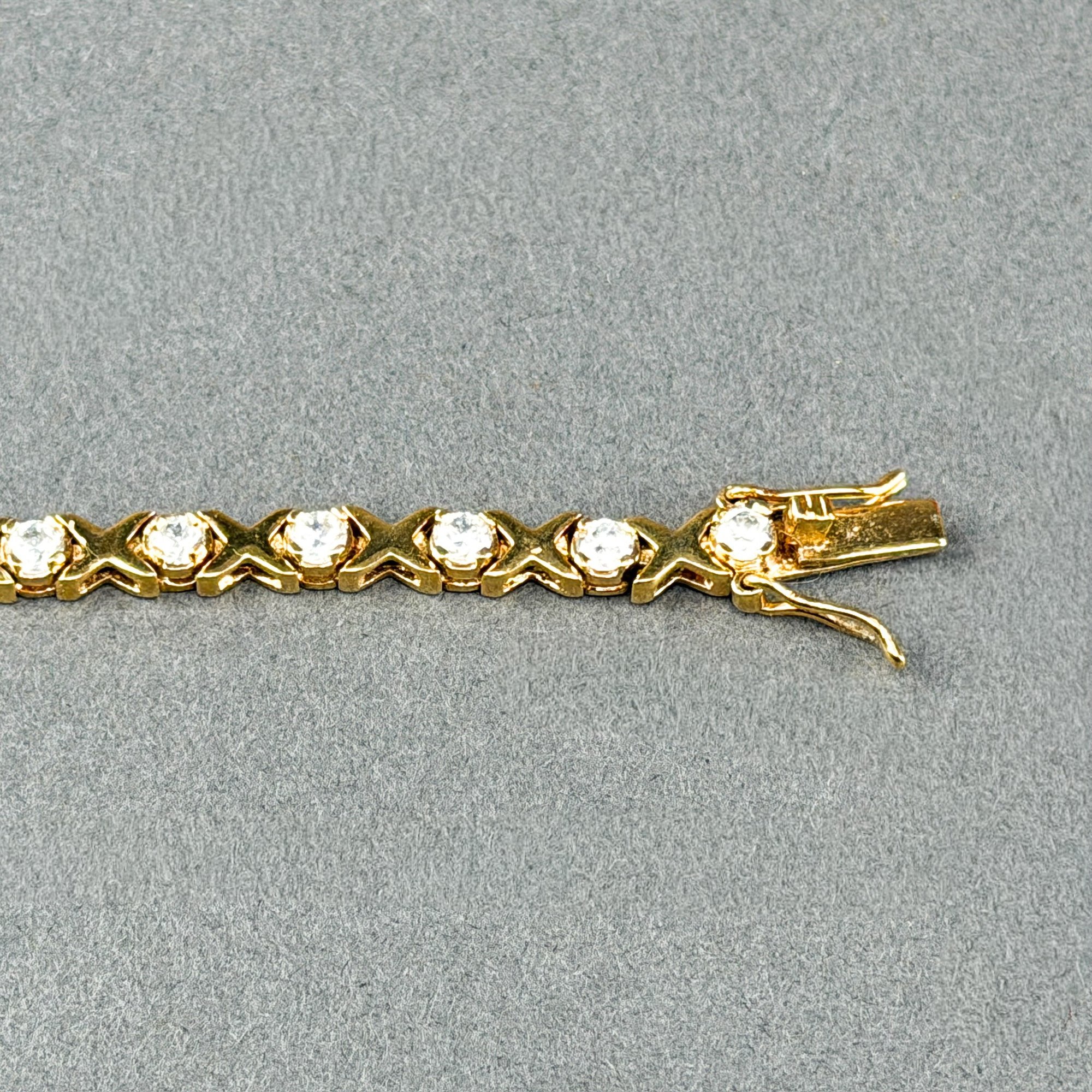 Gold Plated Sterling Silver XO link tennis bracelets. Sapphires or Rhinestones get the kisses and the metal gives the hug.