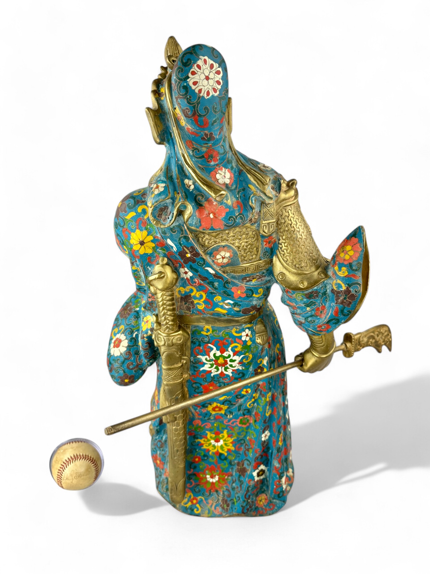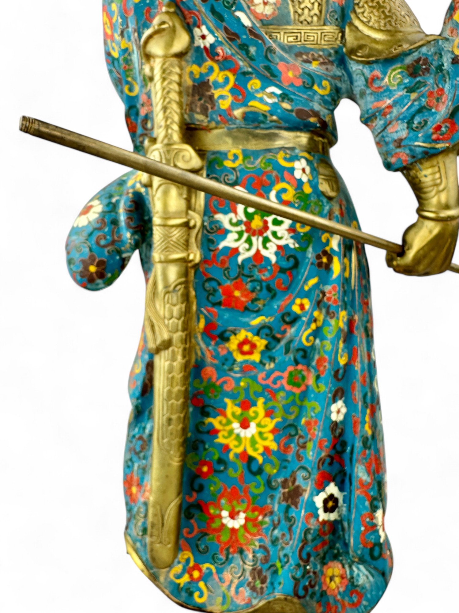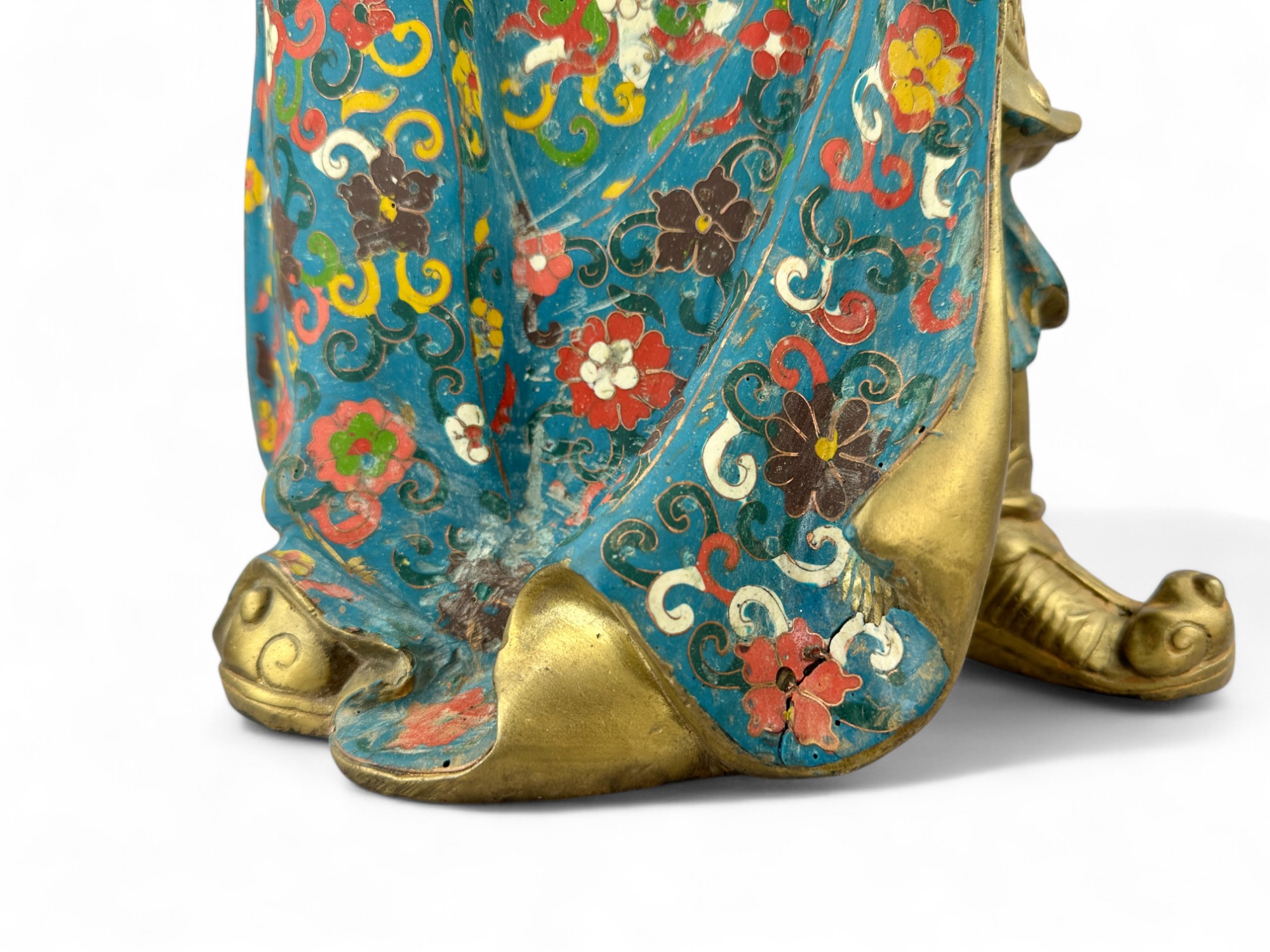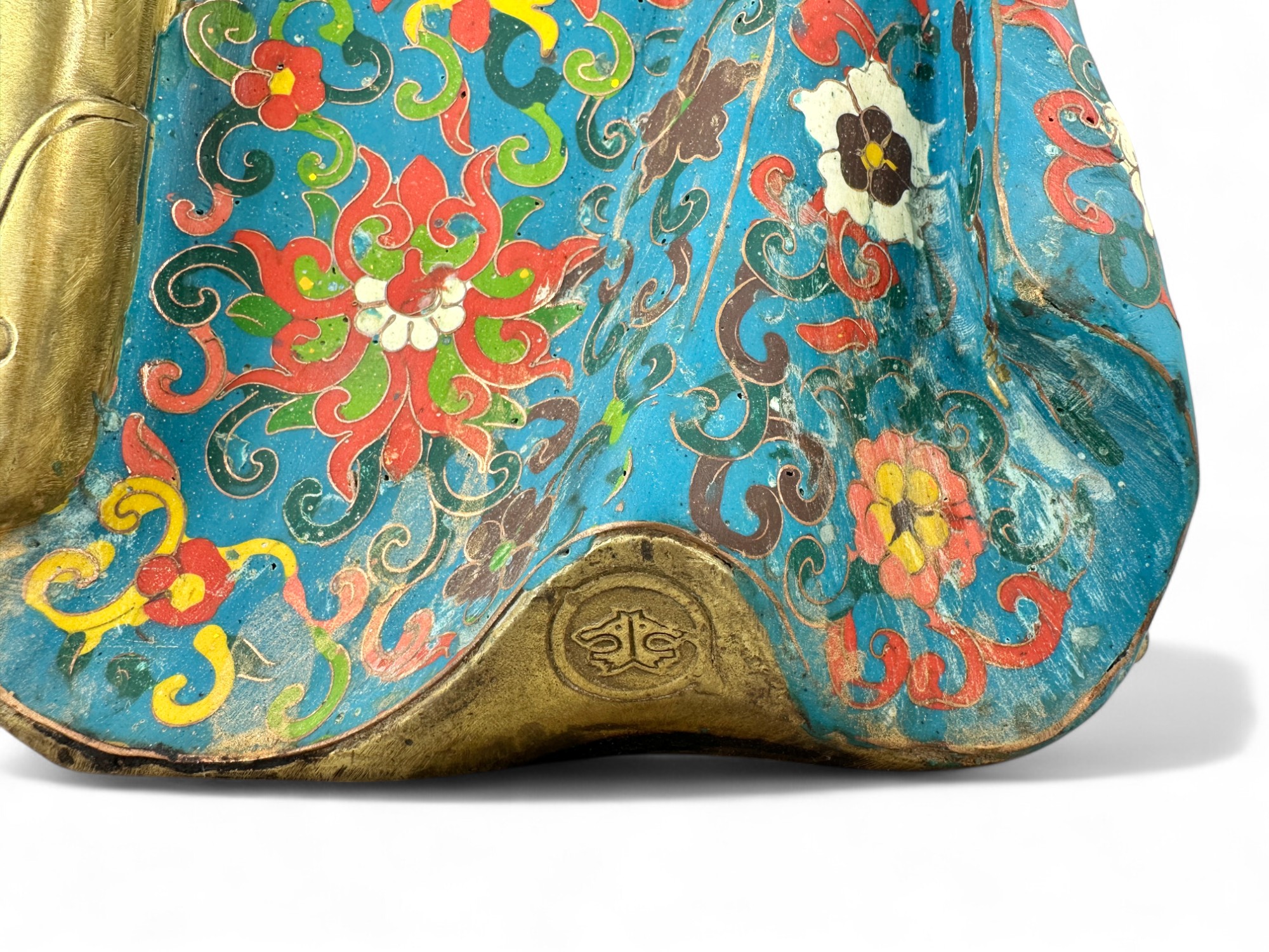 Heavy Bronze with brass patina and Porcelain Enamel Cloisonne.