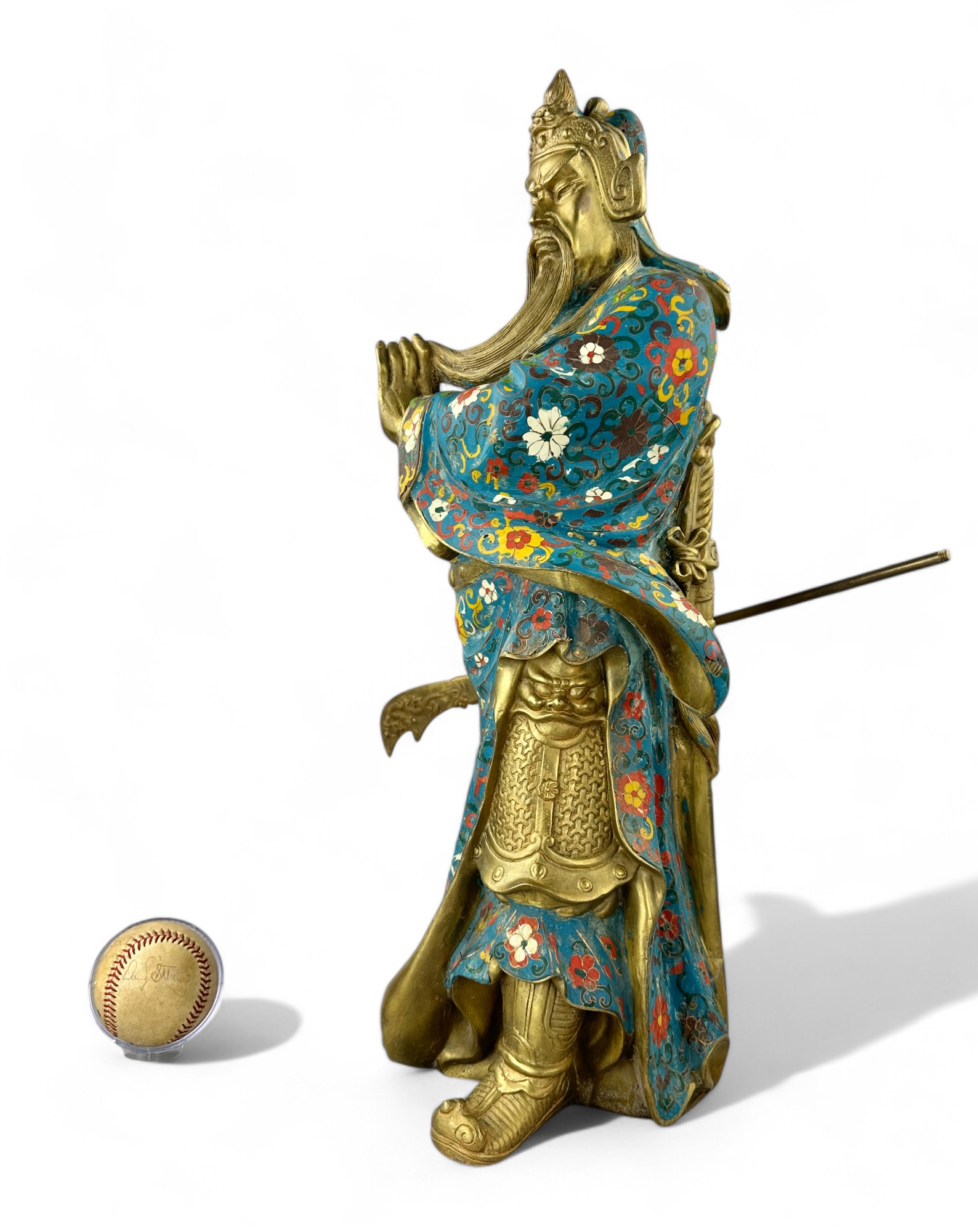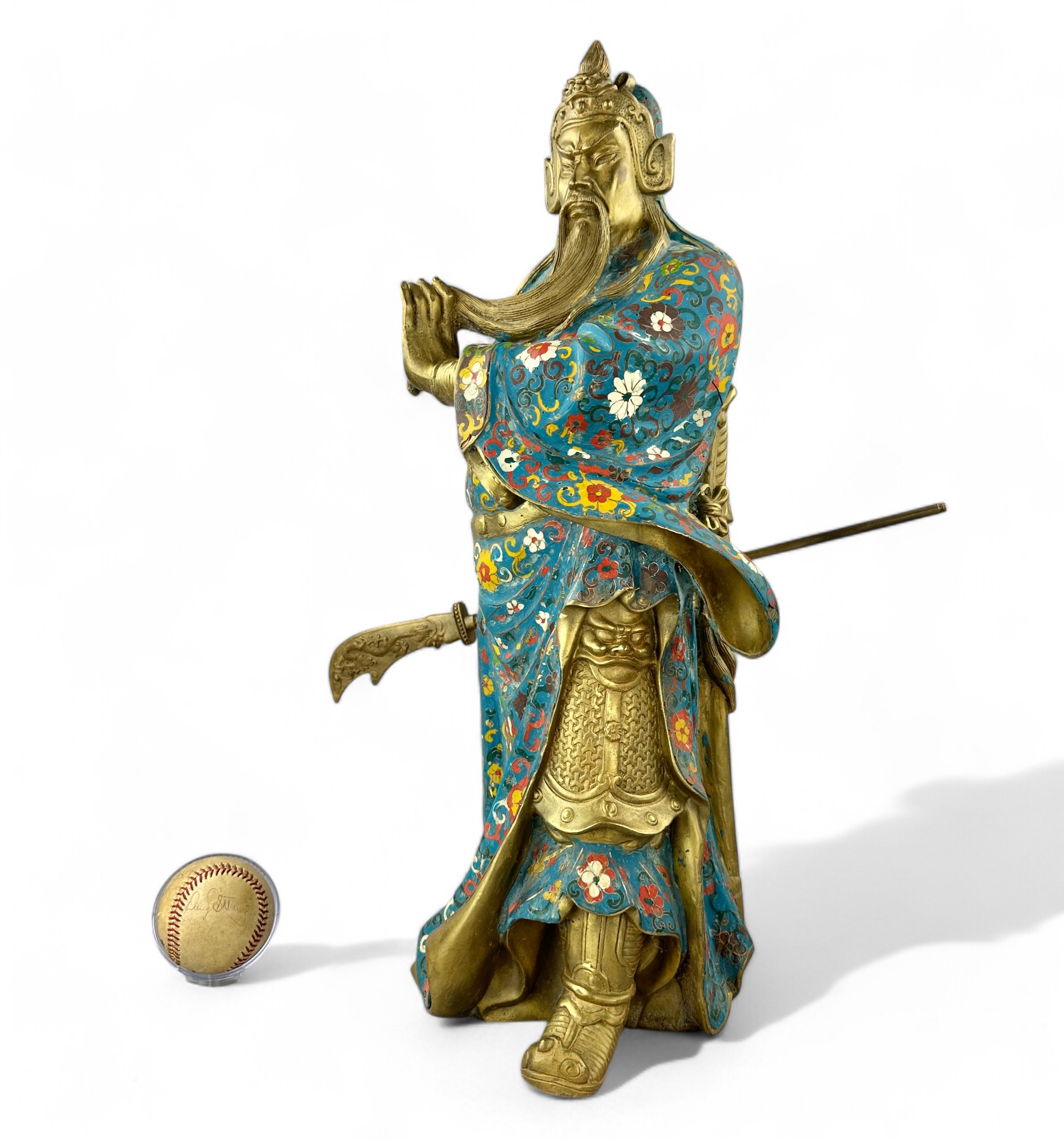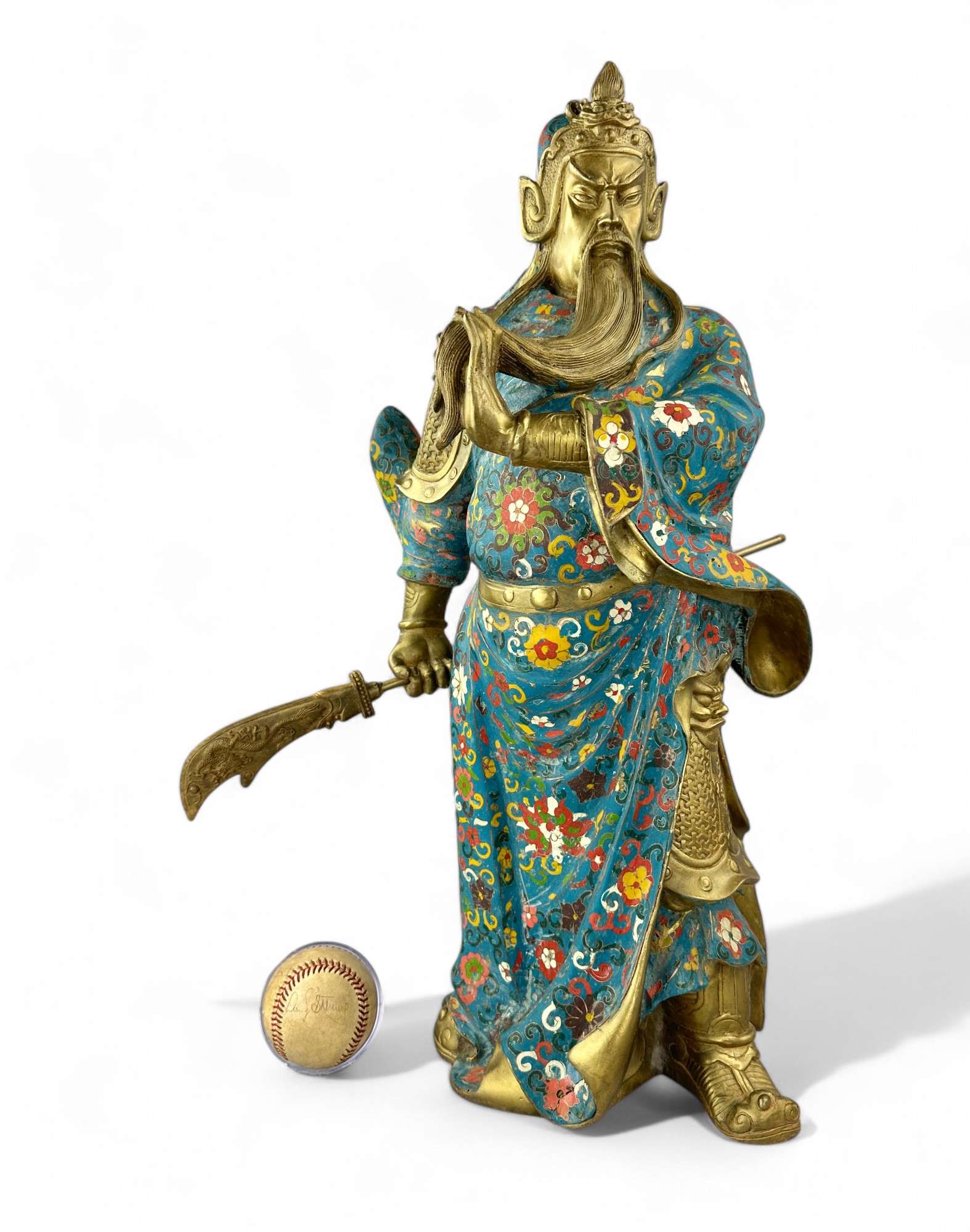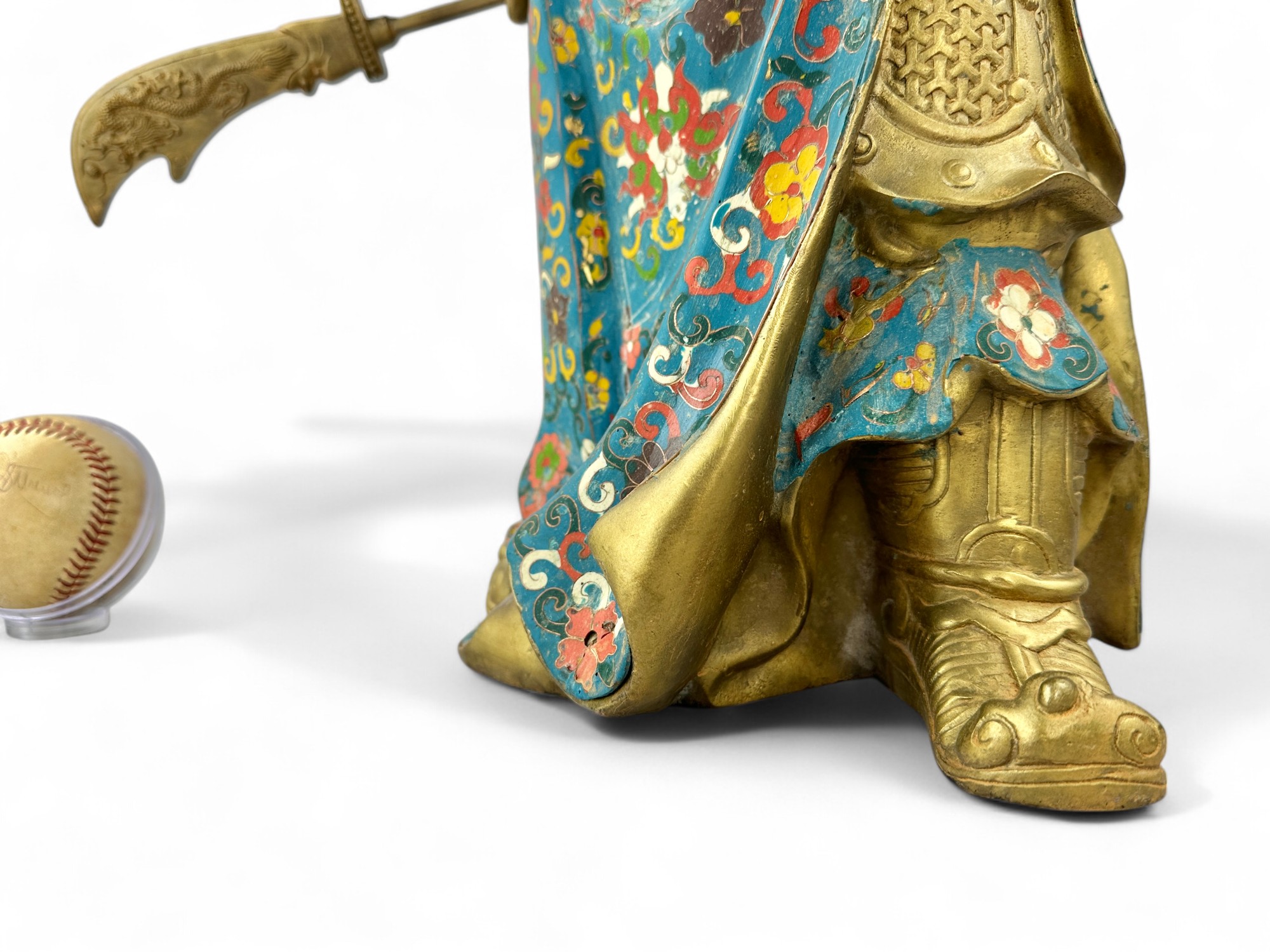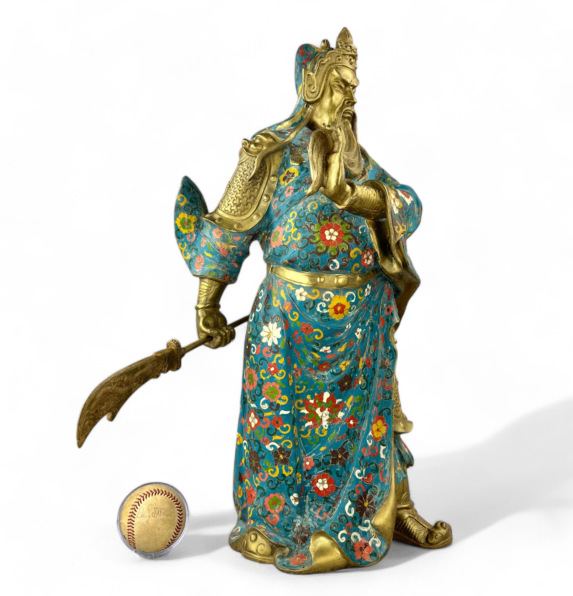 Heavy Bronze with brass patina and Porcelain Enamel Cloisonne.