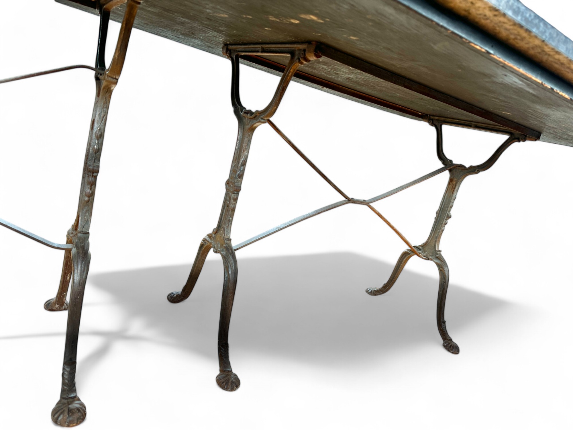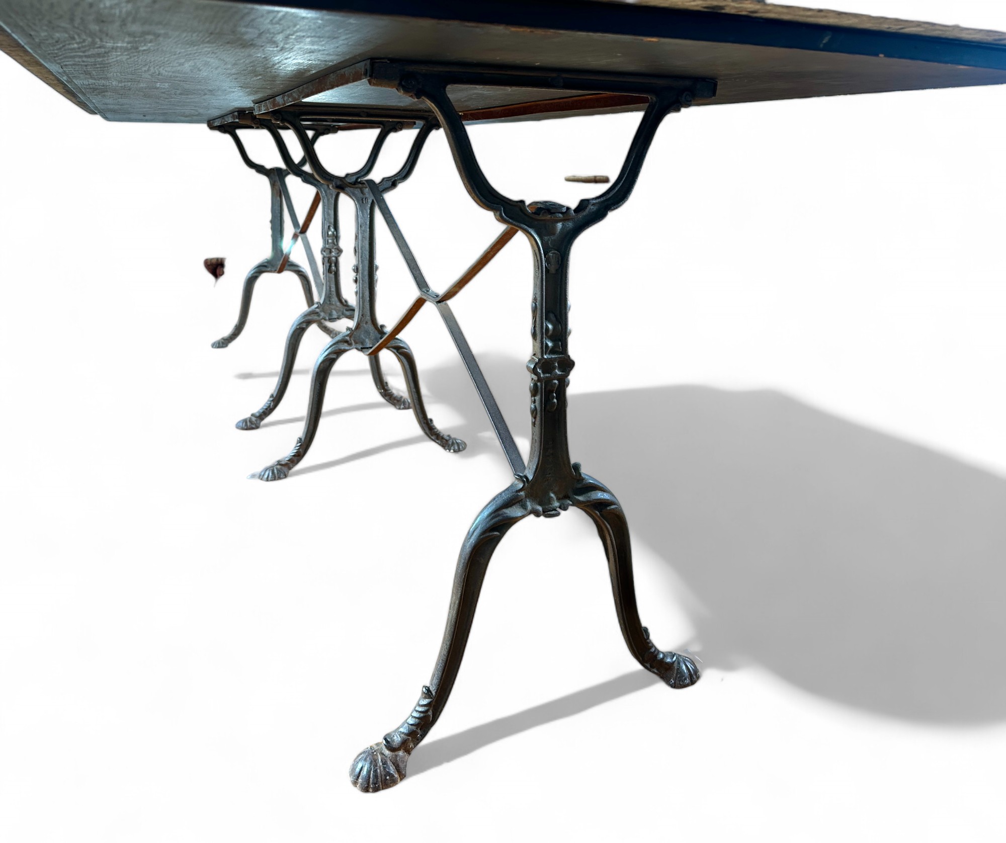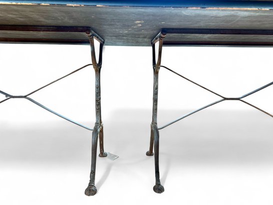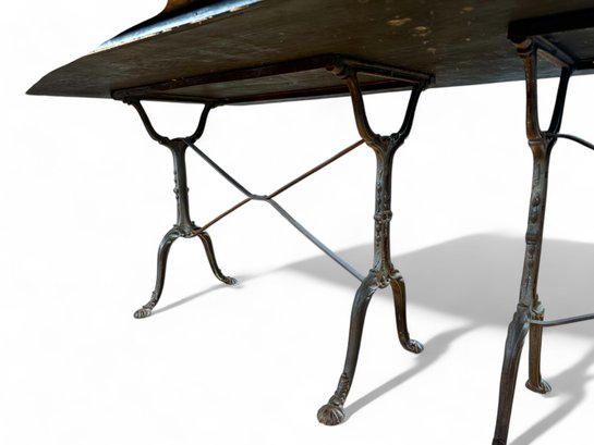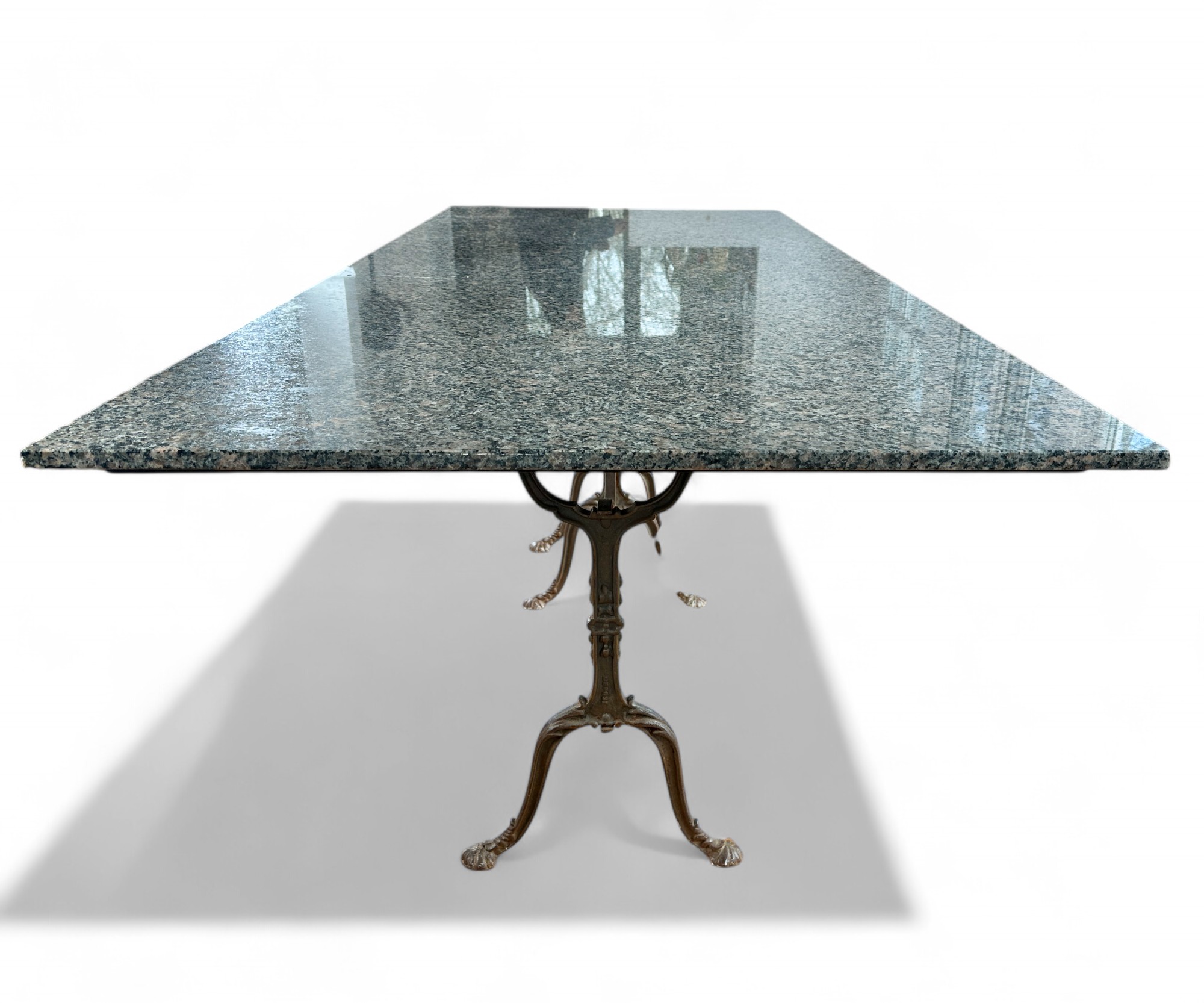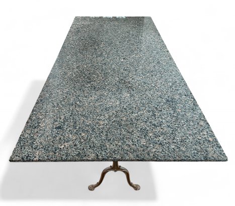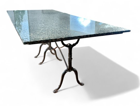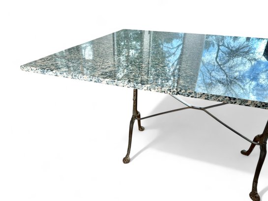 French Style Granite Top reinfoced with wood over Double wide Cast iron base Bistro or Dining Table.