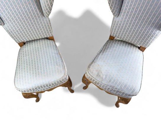 Notes: some pulling on top of upholstery on one chair. signs of use on upholstery but wood is in excellent condition.