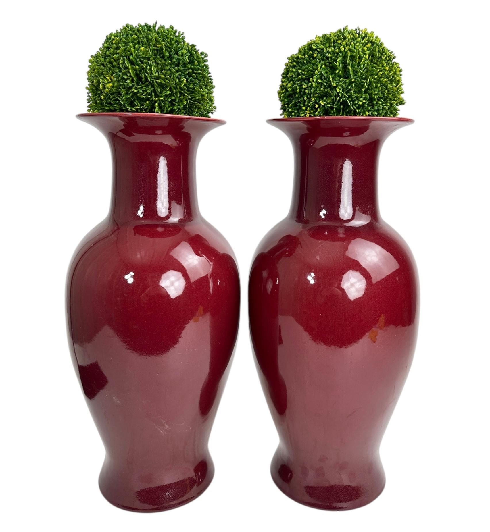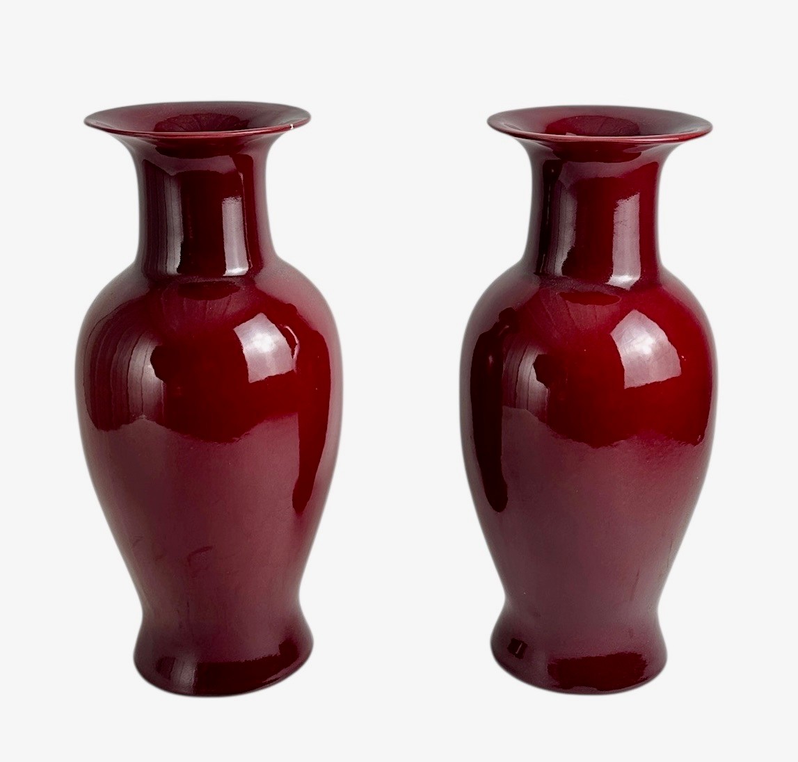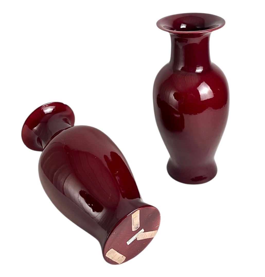Pair of Chinese Ox Blood or Sang-De-Boeuf Glazed Vases