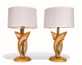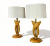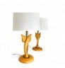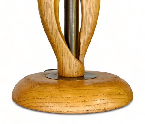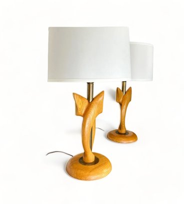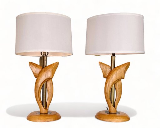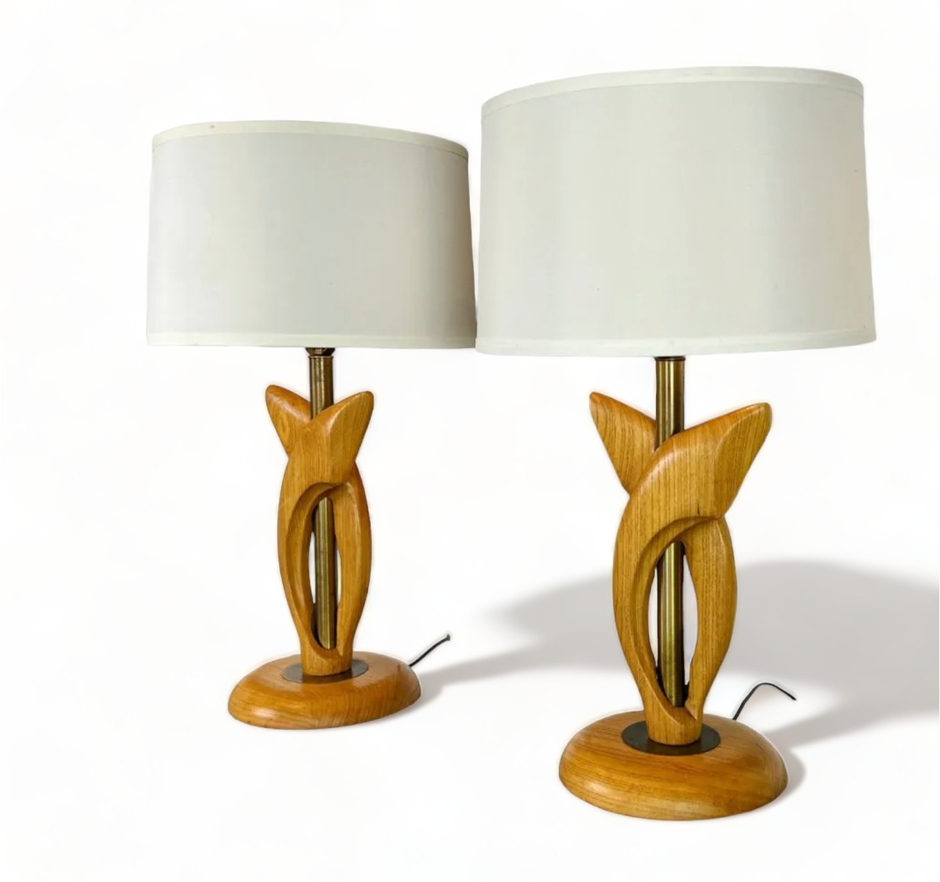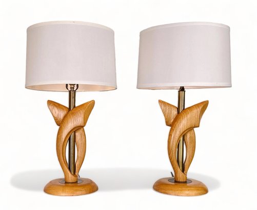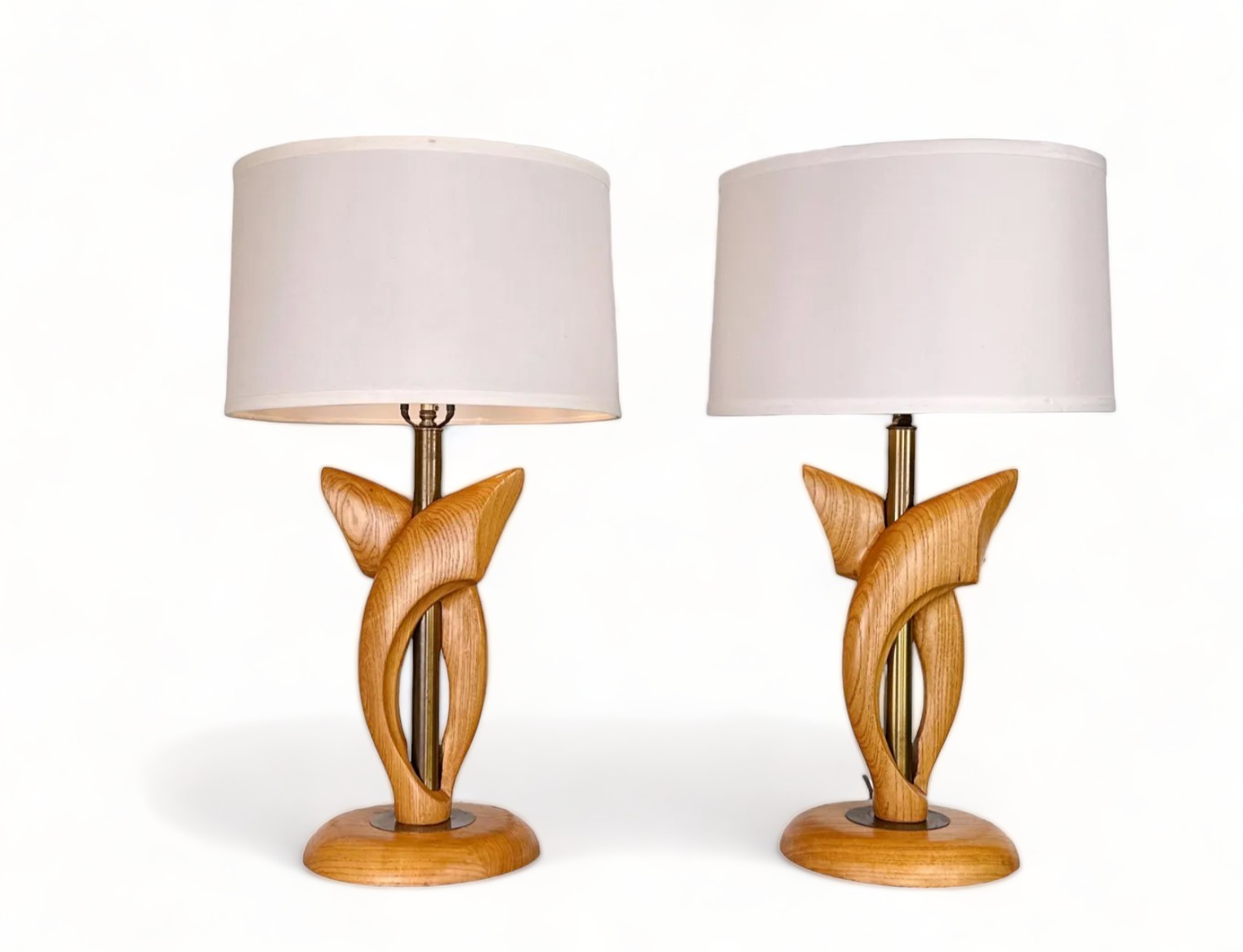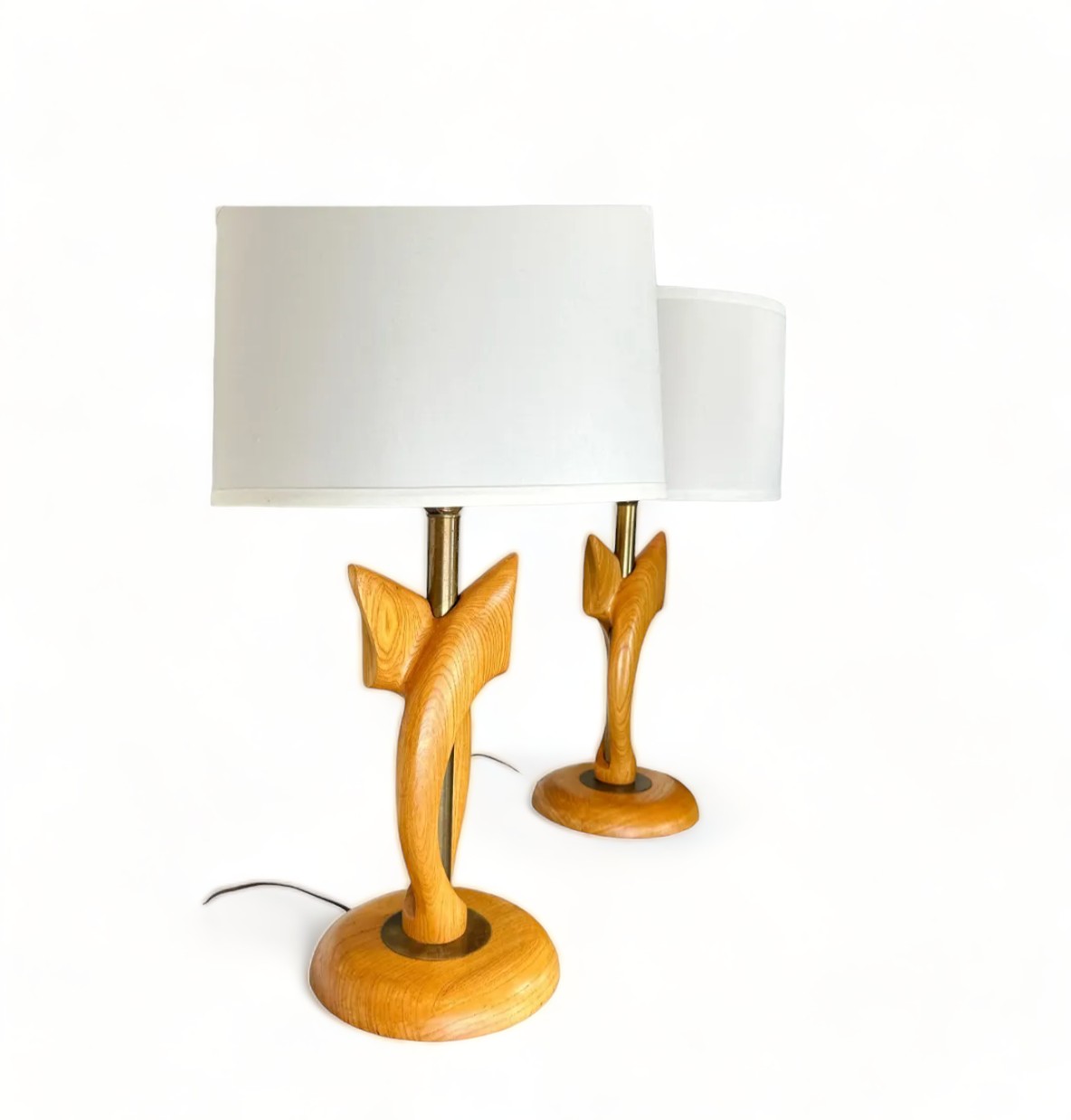 Phenomenal Free Form Oak and Brass lamps with custom shades.